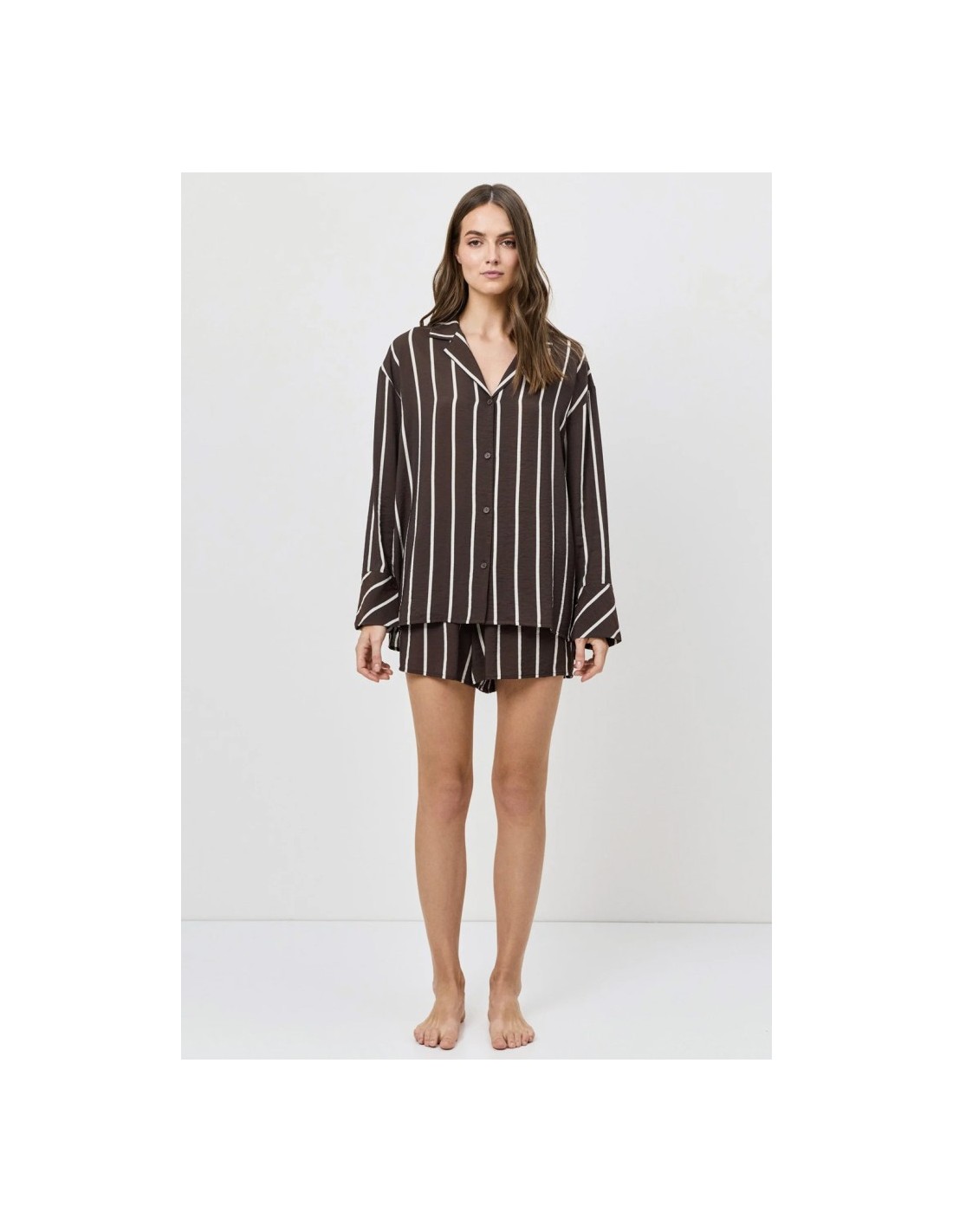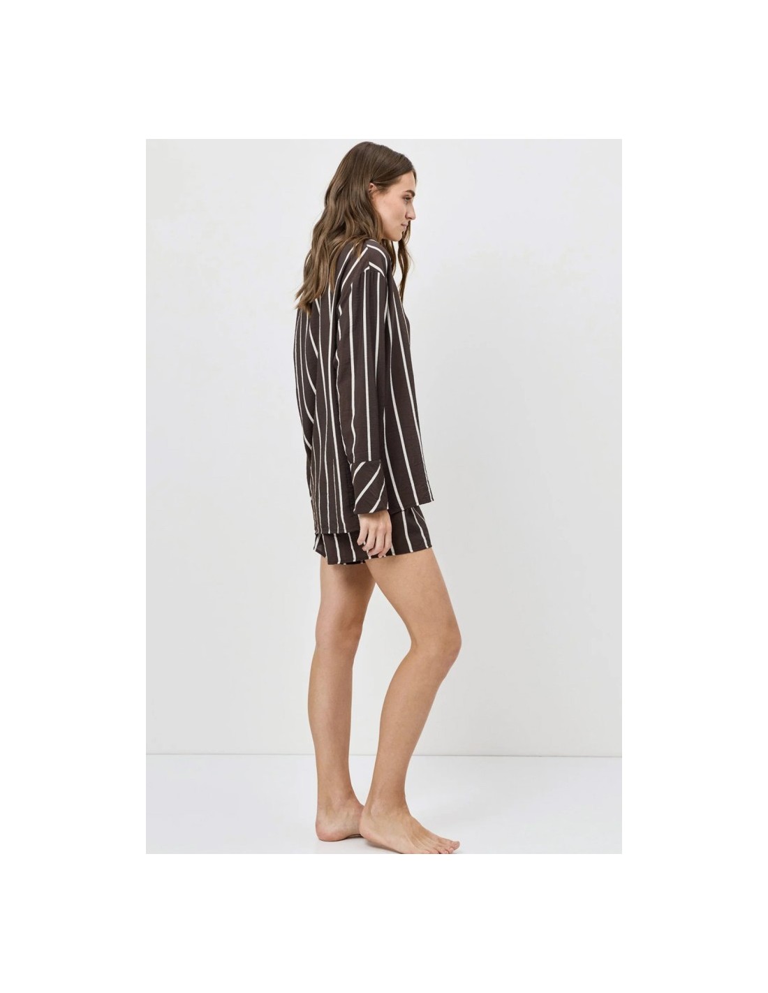 Fantasie a righe verticali bianche su fondo marrone.