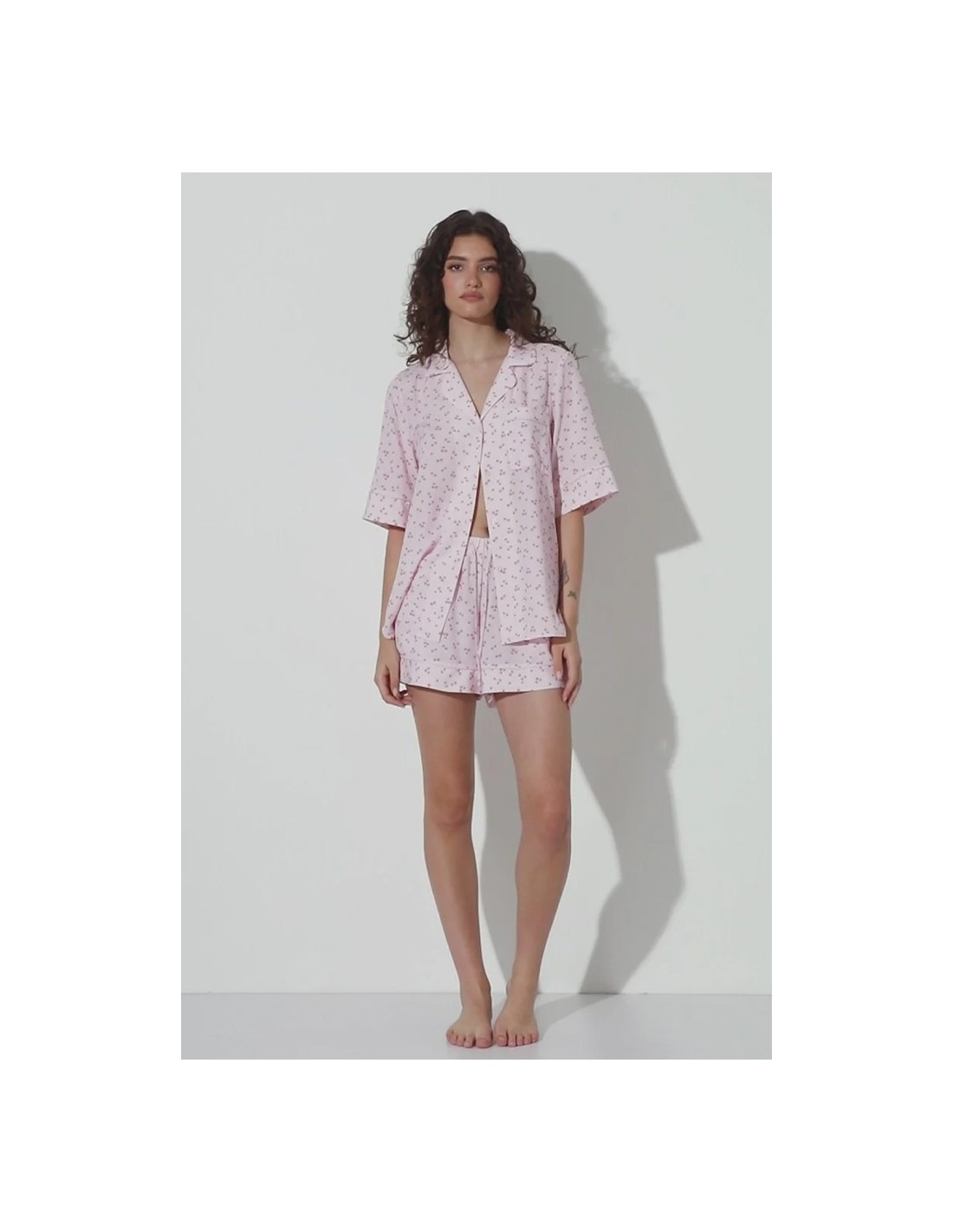 ARUELLE PIGIAMA DONNA ABBOTTONATO MANICA CORTA E SHORTS IN VISCOSA - BLOSSOM