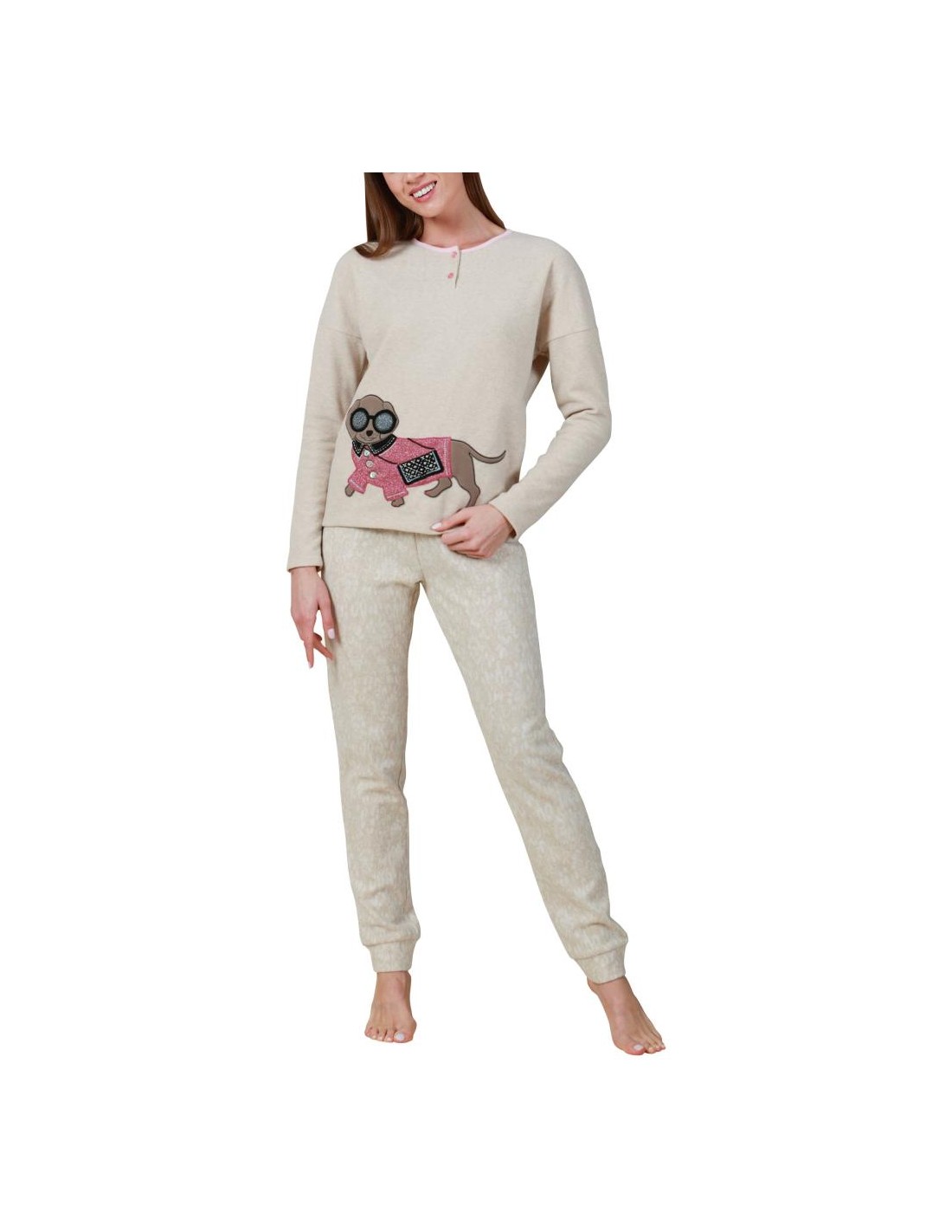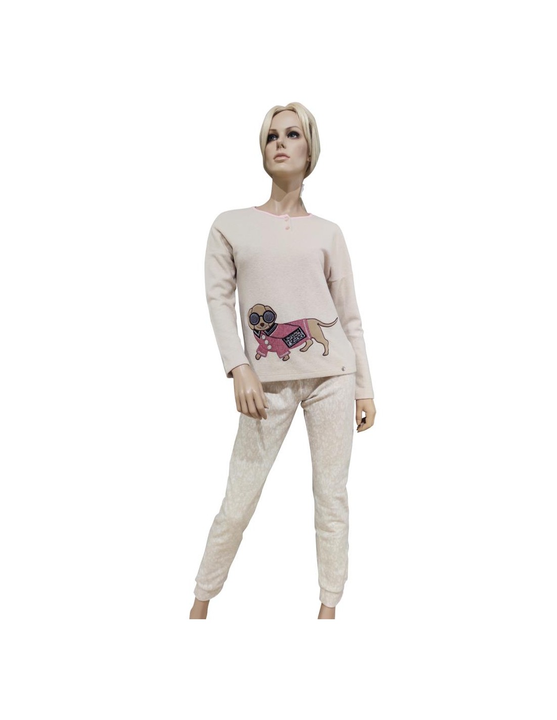 Pigiama Donna invernale a serafino 2 bottoni, manica lunga e pantalone lungo