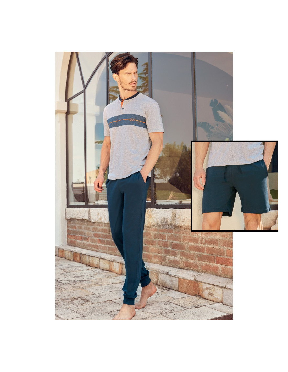 QBO TRIS PIGIAMA UOMO SERAFINO MEZZA MANICA, PANTALONE LUNGO E CORTO