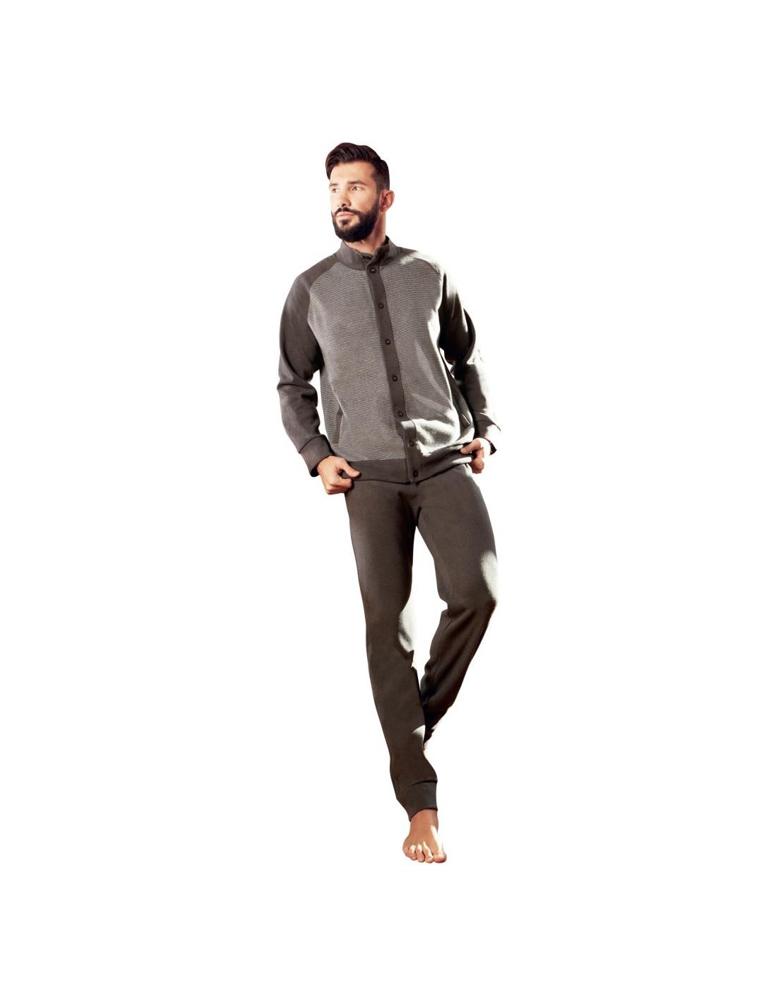 Pigiama uomo aperto invernale chiusura a bottoni.