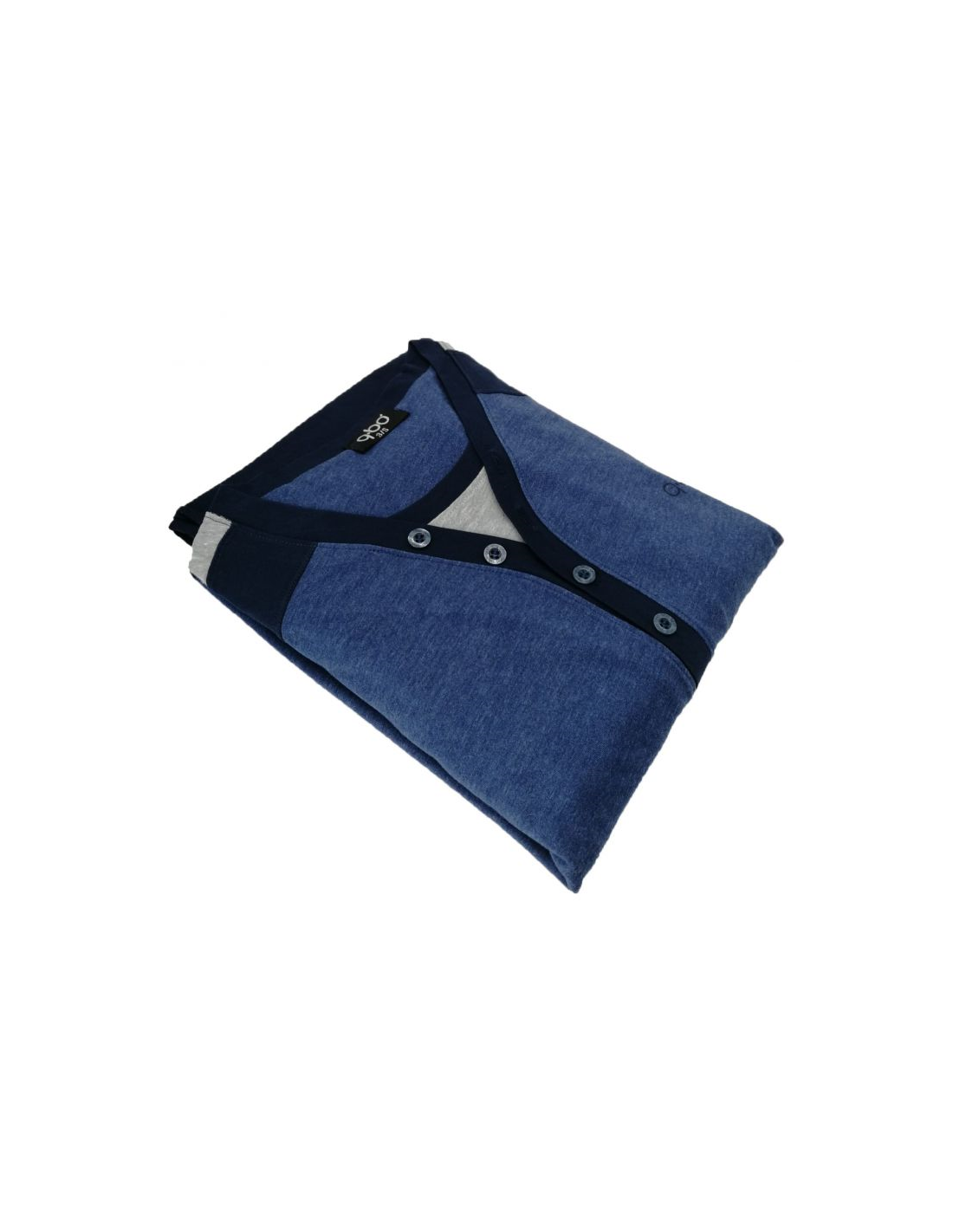 Maglia collo a serafino 3 bottoni, manica lunga e pantalone lungo con polsini.