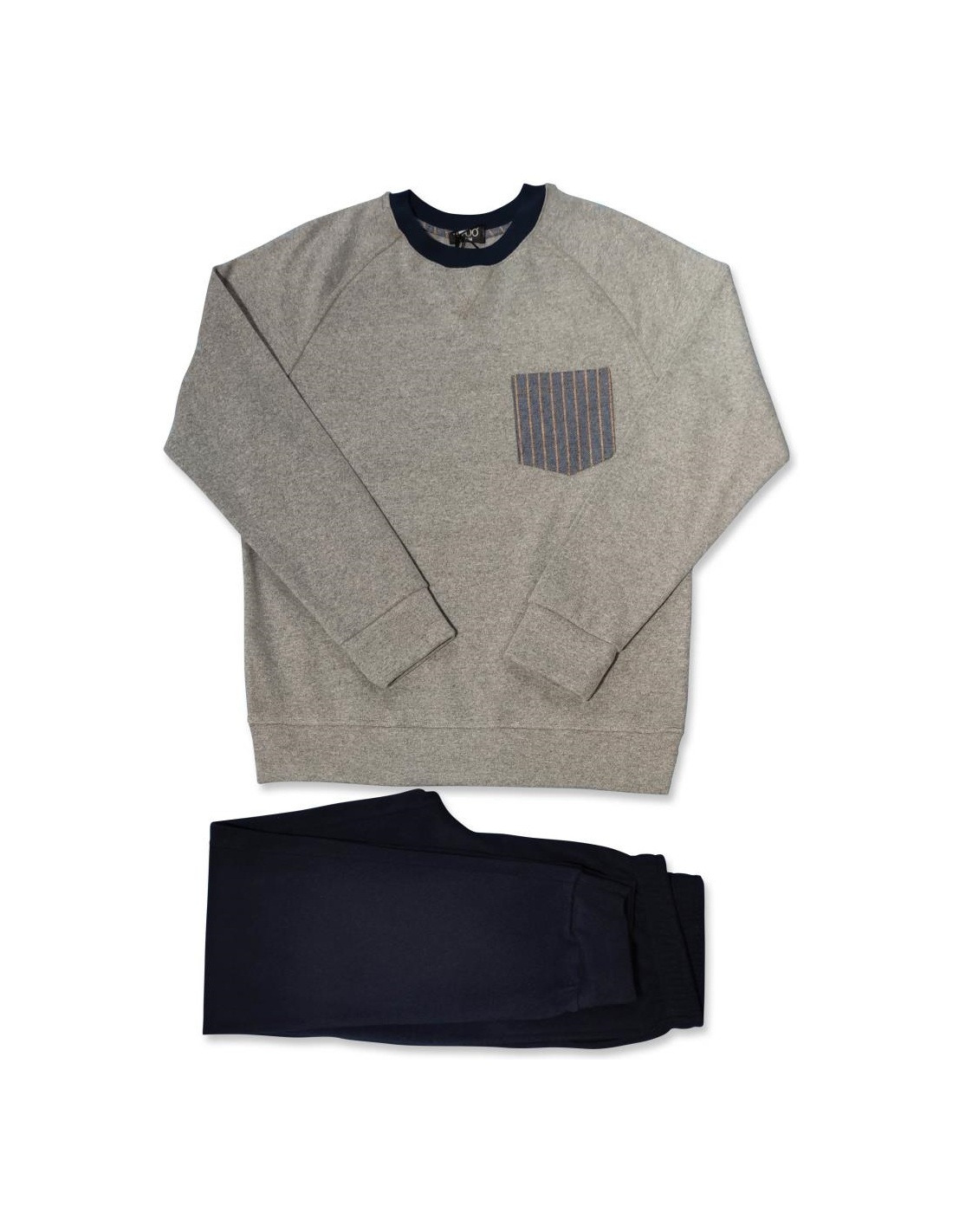 Pigiama uomo invernale girocollo manica lunga con polsini e taschino.