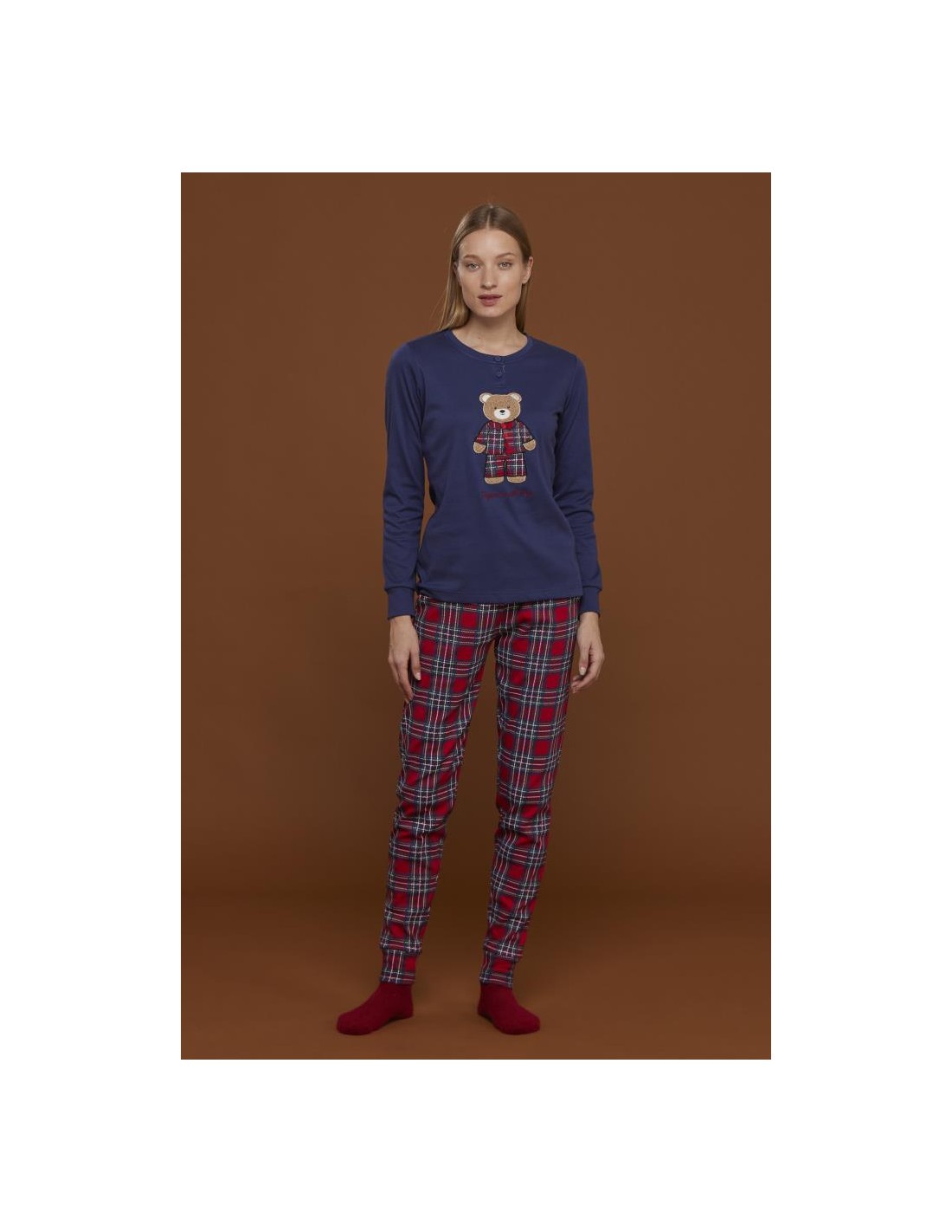 Pigiama donna invernale in caldo cotone, maglia collo a
