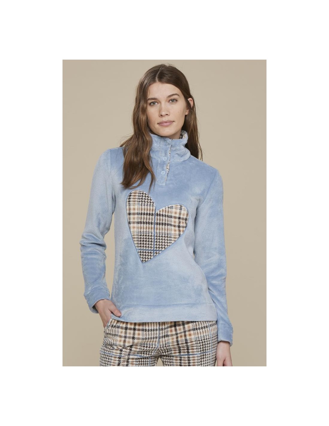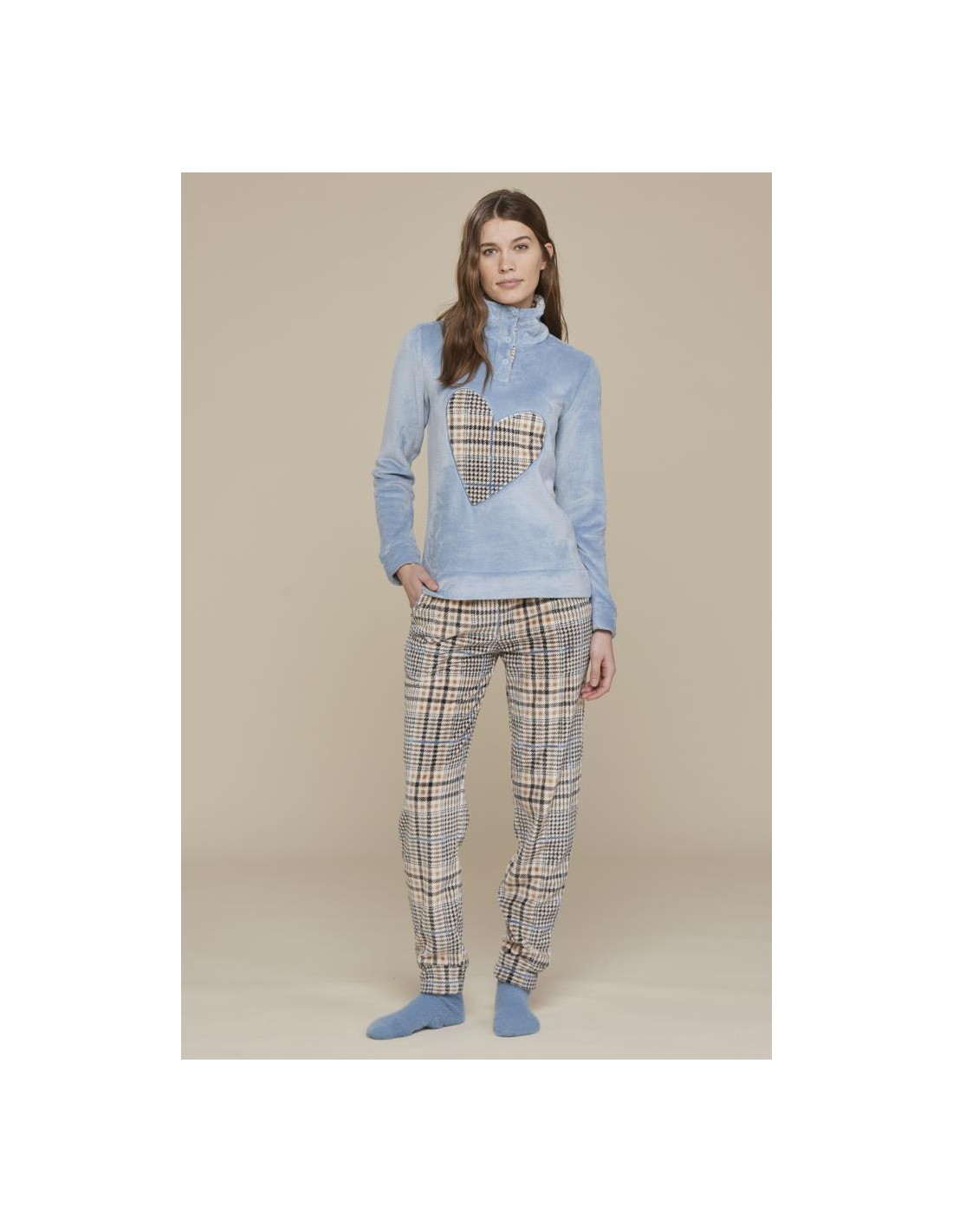 PIGIAMA DONNA INVERNALE CON COLLO ALTO IN CORAL FLEECE