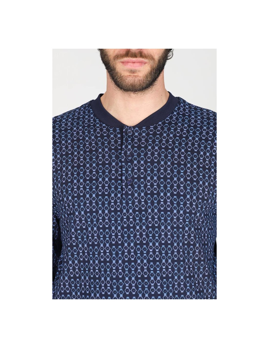 Maglia stampata fantasia "orologi", manica lunga a serafino con 3 bottoni e polsini.