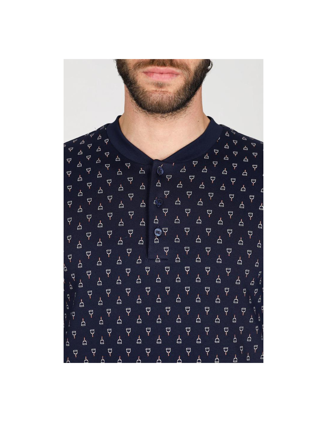 Maglia stampata fantasia "staffe", manica lunga a serafino con 3 bottoni e polsini.