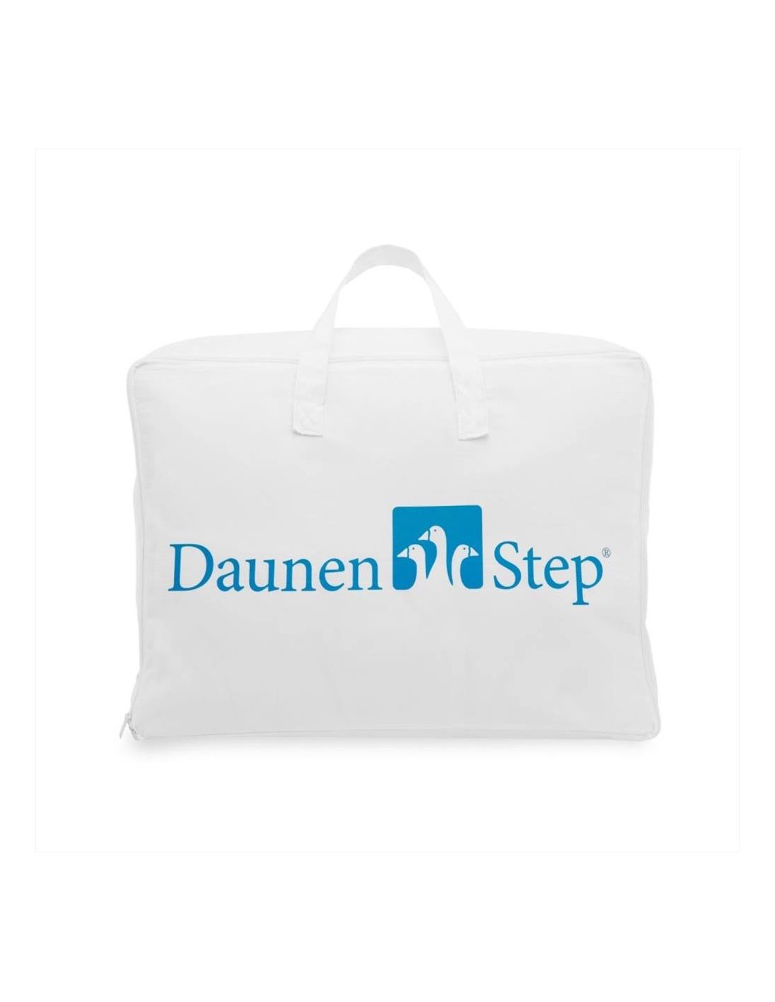 Una delle caratteristiche uniche offerta dai piumoni Daunenstep è la trapuntatura a quadri fissi che mantiene il calore uguale su tutta la superficie del capo, mentre lo speciale bordo piatto con asole è costruito per far sì che due piumini possano essere uniti insieme.