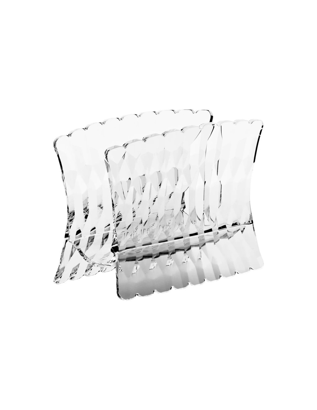 Portatovaglioli elegante e funzionale, realizzato nello speciale Cristallo Acrilico Bio-based* di origine biologica, un materiale organico rinnovabile, moderno e non fossile ricavato da scarti vegetali e 100% riciclabile.