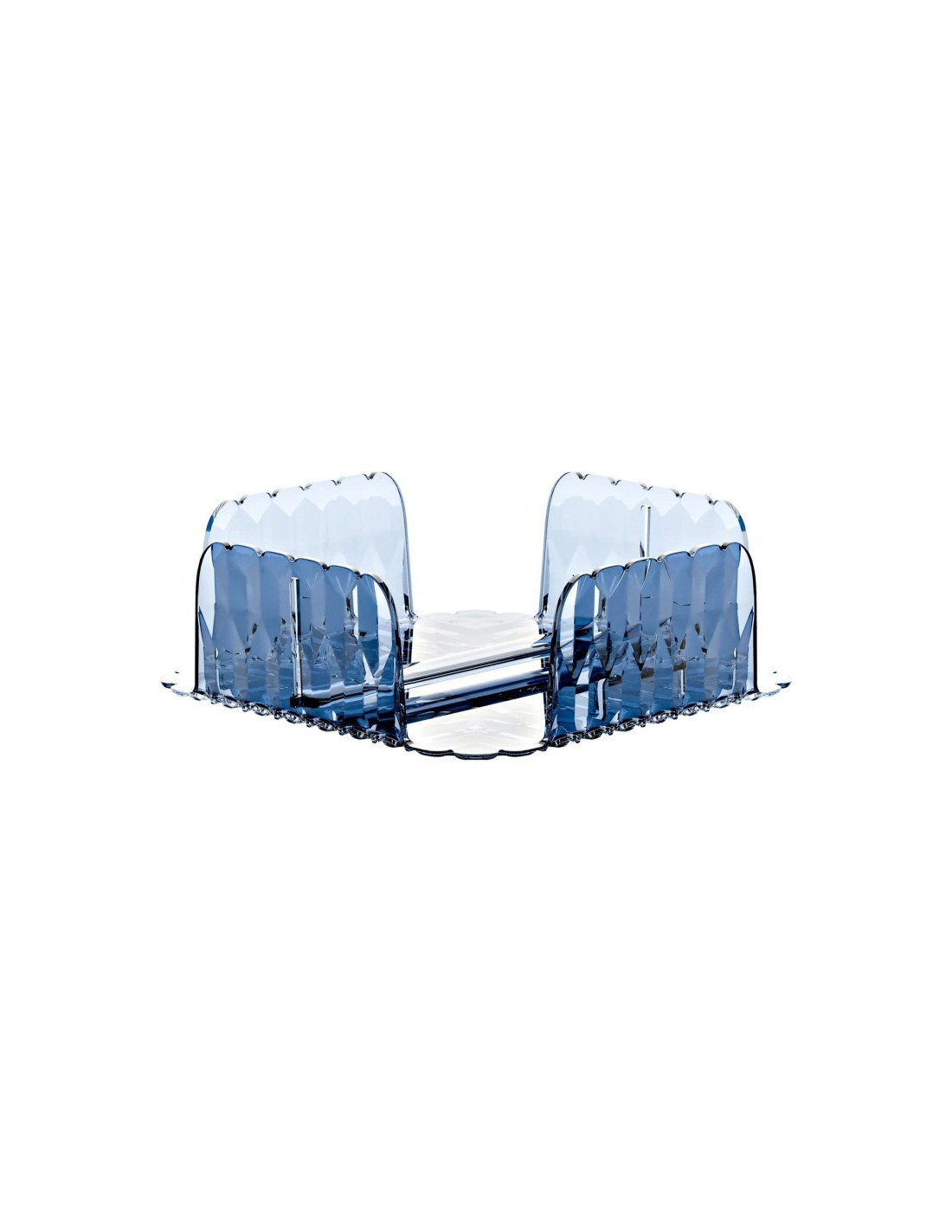 Portatovaglioli orizzontale realizzato nello speciale Cristallo Acrilico Bio-based* di origine biologica, un materiale organico rinnovabile, moderno e non fossile ricavato da scarti vegetali e 100% riciclabile.