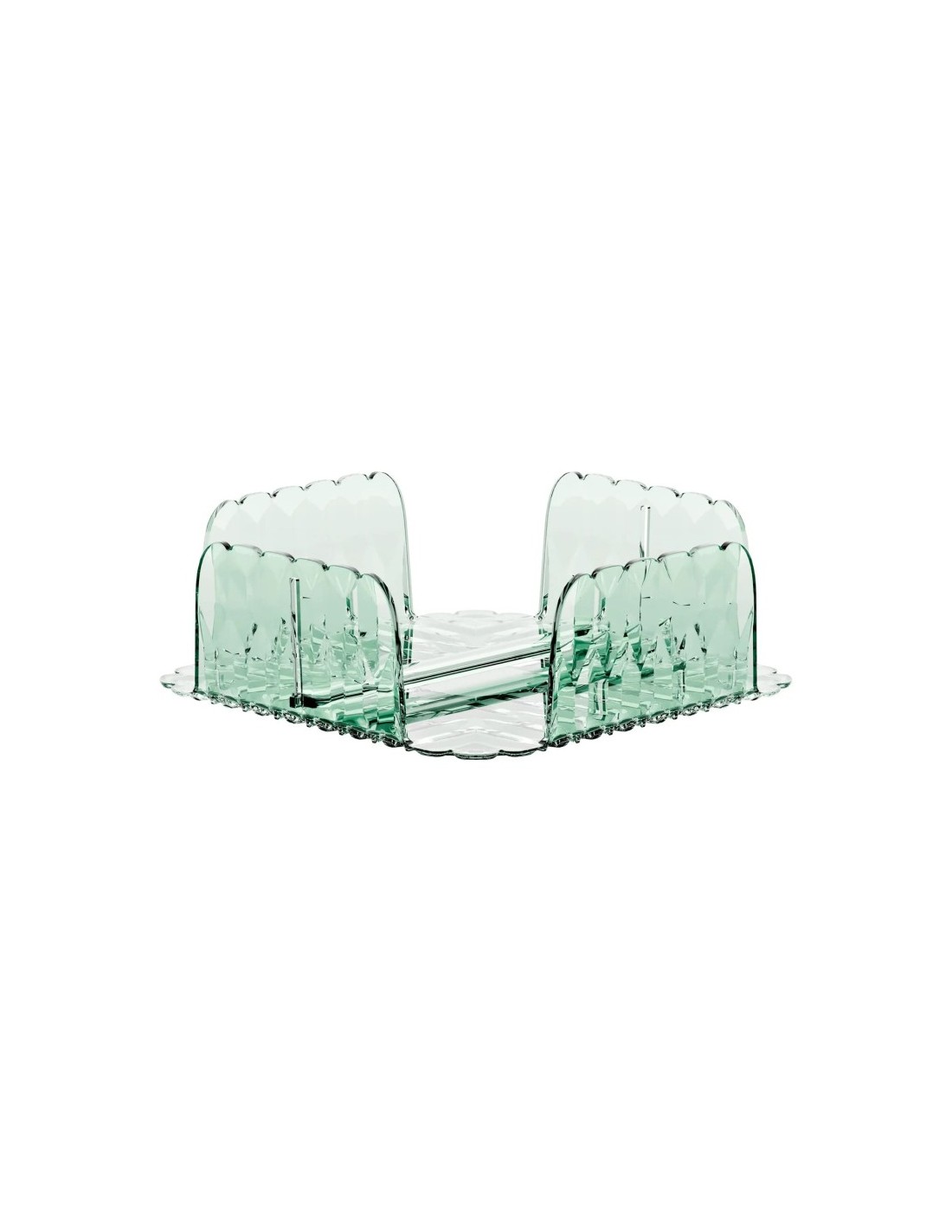 Portatovaglioli orizzontale realizzato nello speciale Cristallo Acrilico Bio-based* di origine biologica, un materiale organico rinnovabile, moderno e non fossile ricavato da scarti vegetali e 100% riciclabile.