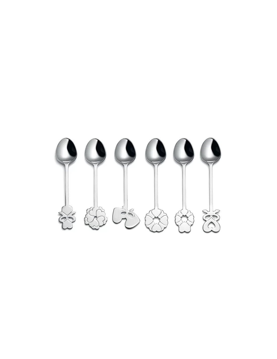 Set 6 cucchiaini in acciaio e impreziositi da un decoro sul sommo