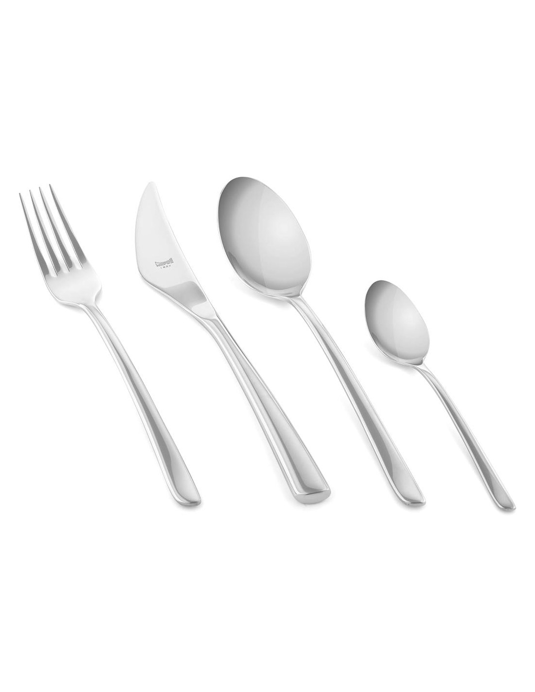 Il Servizio è composto da: 6 cucchiai tavola, 6 forchette tavola, 6 coltelli tavola manico pieno, 6 cucchiaino caffè.