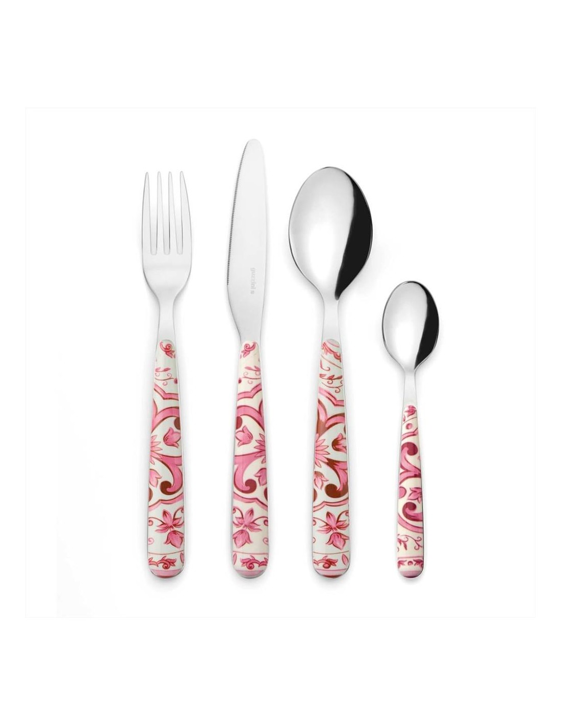 Le posate in acciaio con manico in plastica decorata ‘’Blues’’ aggiungono un tocco di colore e allegria alla tavola.