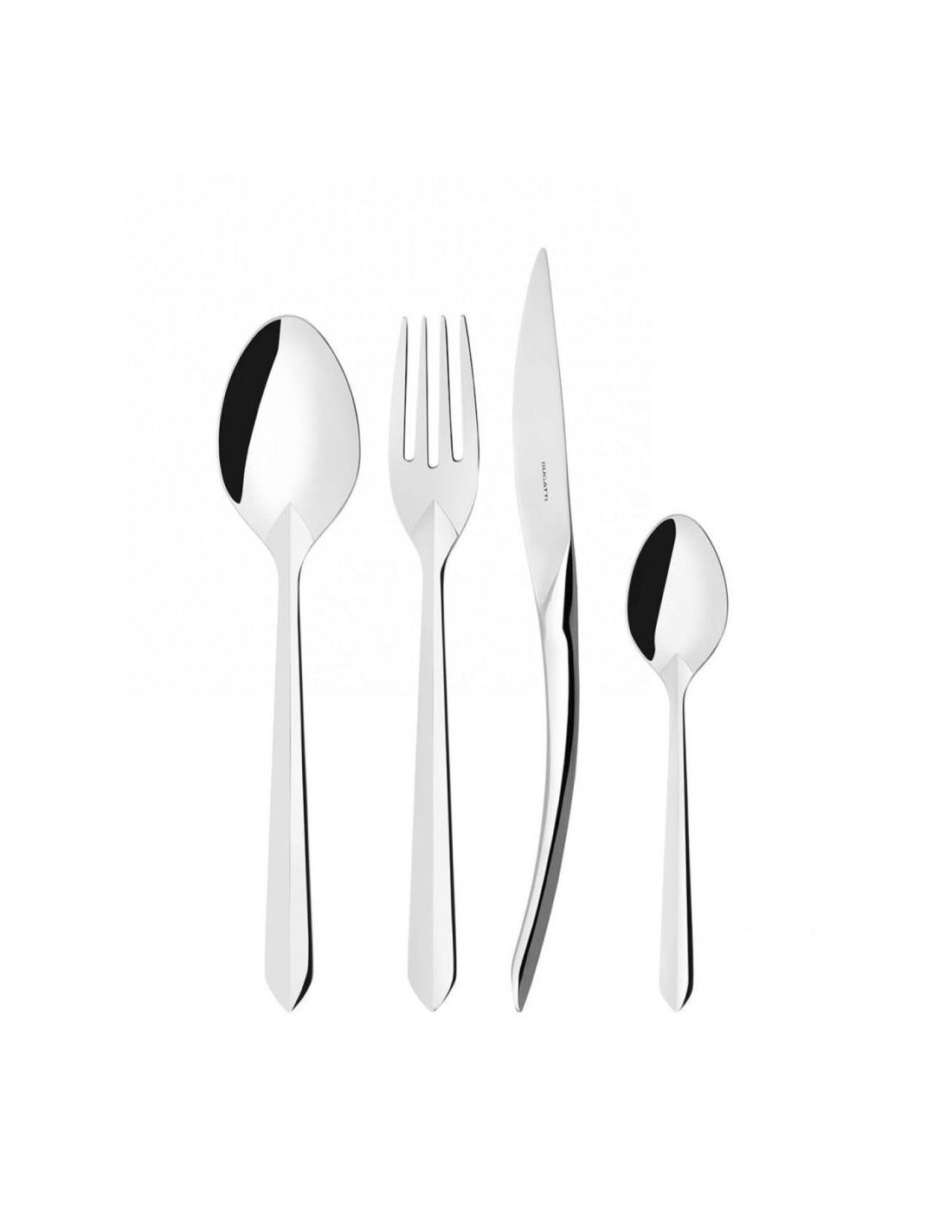Dalle forme appuntite e slanciate, le posate acciaio inox 18/10 Aphrodite sono la reinterpretazione in chiave moderna del fascino eterno di una mise-en-place elegante. Il design dinamico e filante garantisce stupore e sorpresa nei tuoi ospiti. Il coltello è forgiato monoblocco e resta in appoggio sulla lama. Sono lavabili in lavastoviglie.