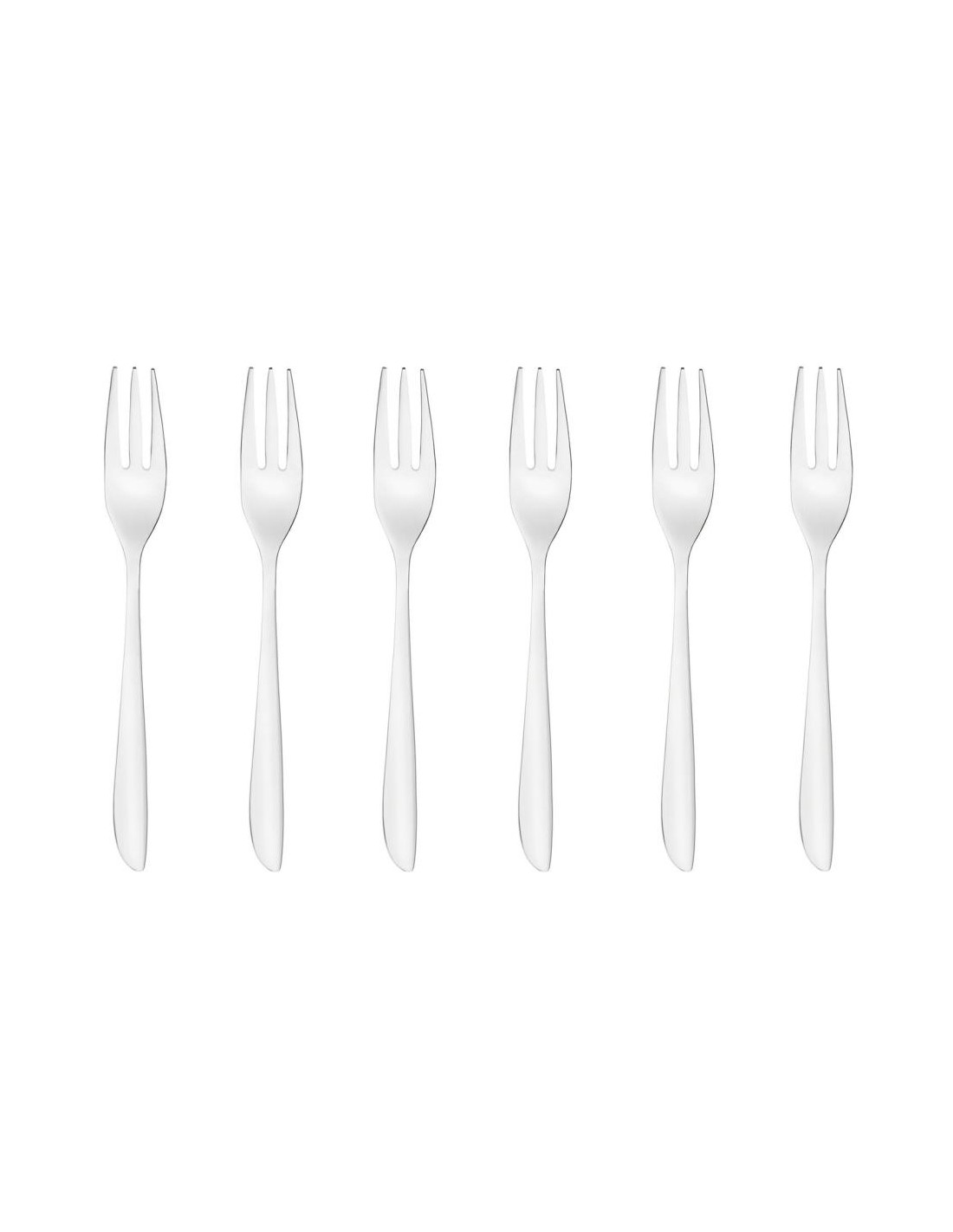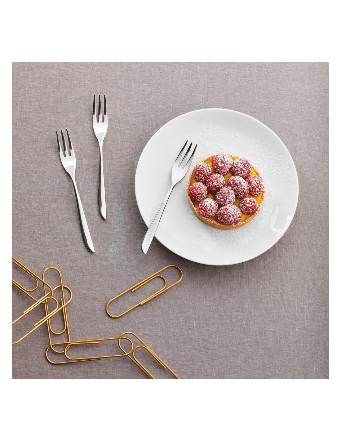 Servizio dessert per 6 persone. Include 6 forchettine a tre rebbi lunghe 14 cm, ideali per gustare dolci al piatto.