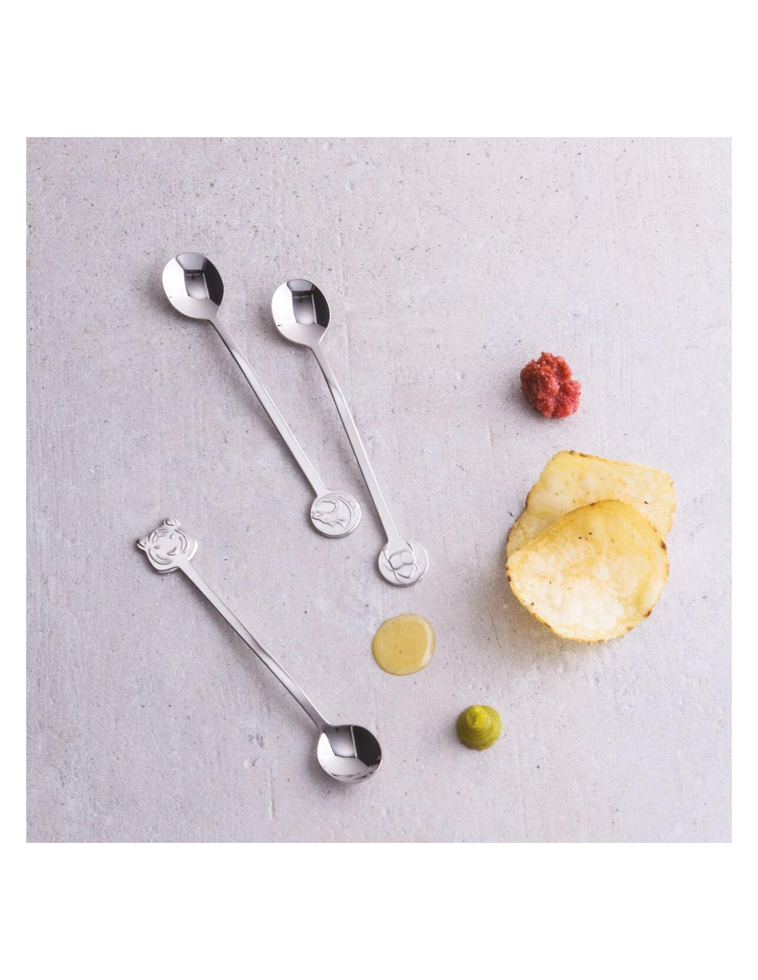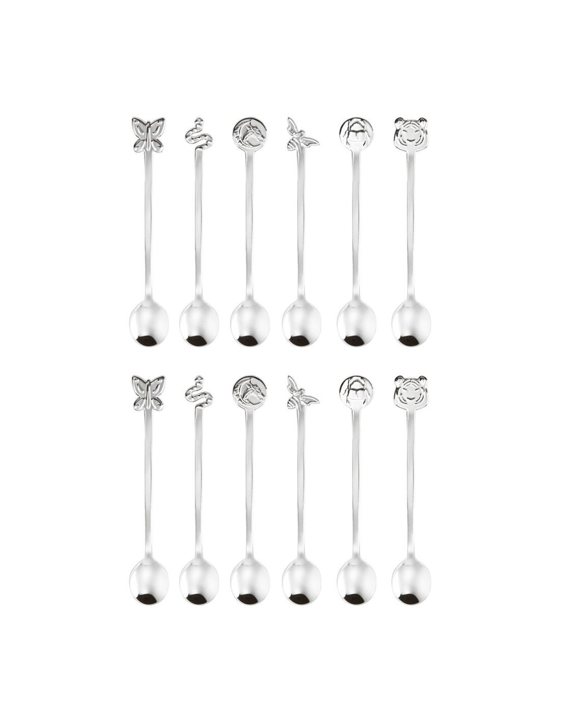 Set composto da 12 cucchiaini. Tigre, farfalla, ape, scarabeo, drago e