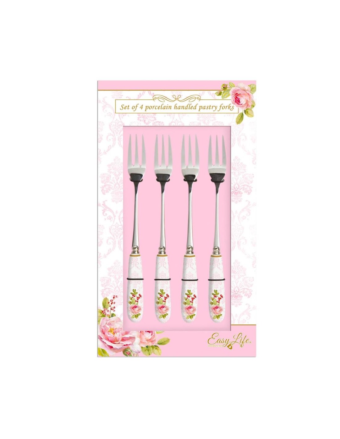 Set 4 forchette dolce con manico in porcellana Floral Damask.