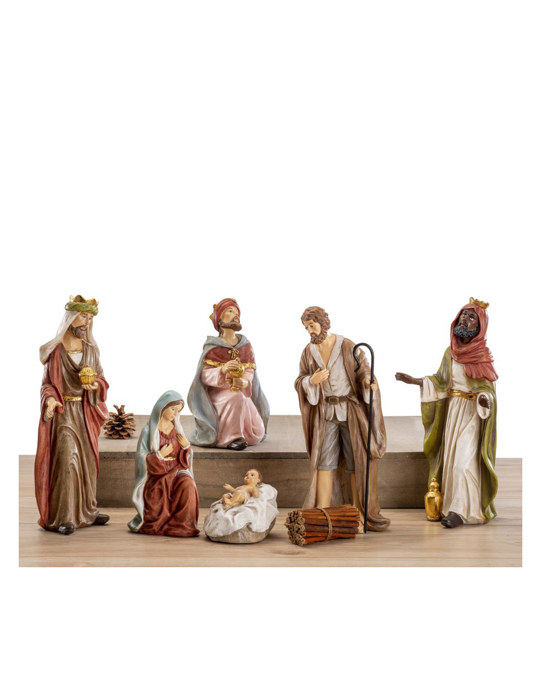 Il set comprende 3 Re magi, Giuseppe, Maria e Gesù