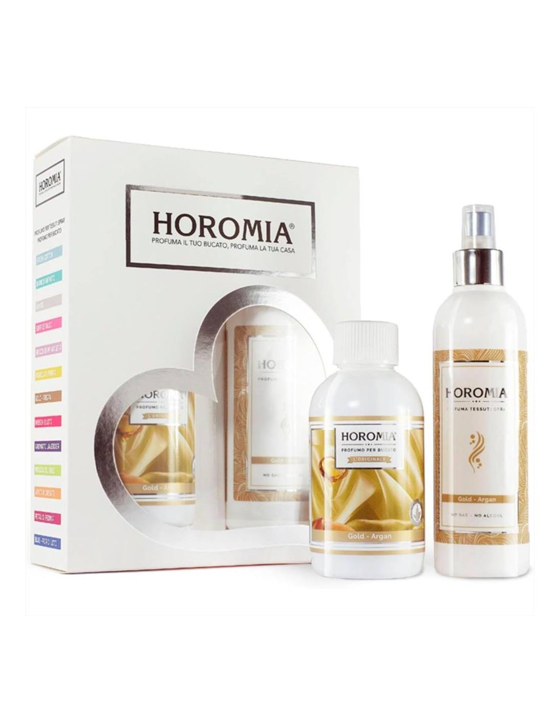 HOROMIA COFANETTO PROFUMA BUCATO 250 ML + SPRAY TESSUTI 250 ML - GOLD ARGAN