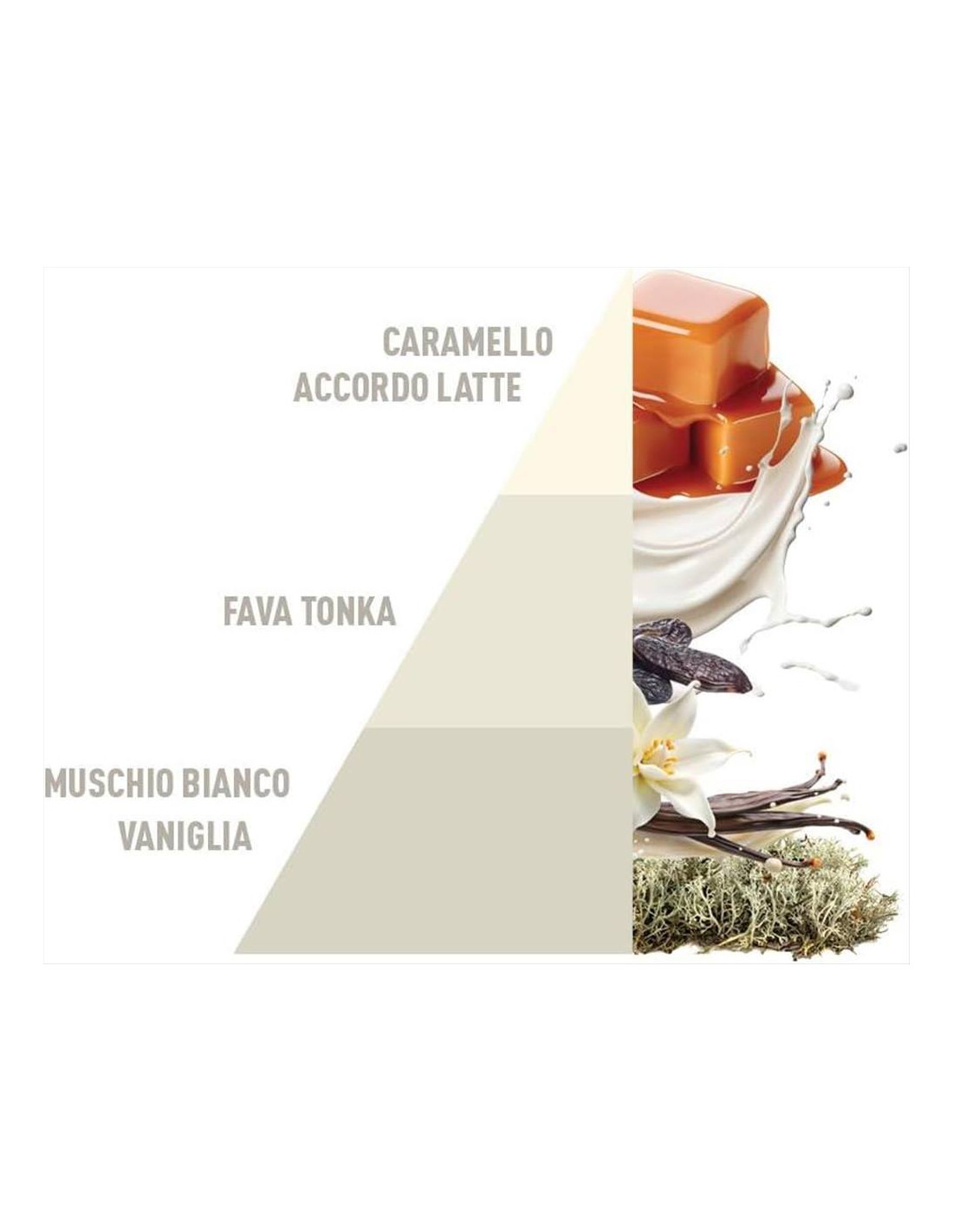 note aromatiche di fava tonka. L’abbraccio morbido di muschi bianchi e vaniglia