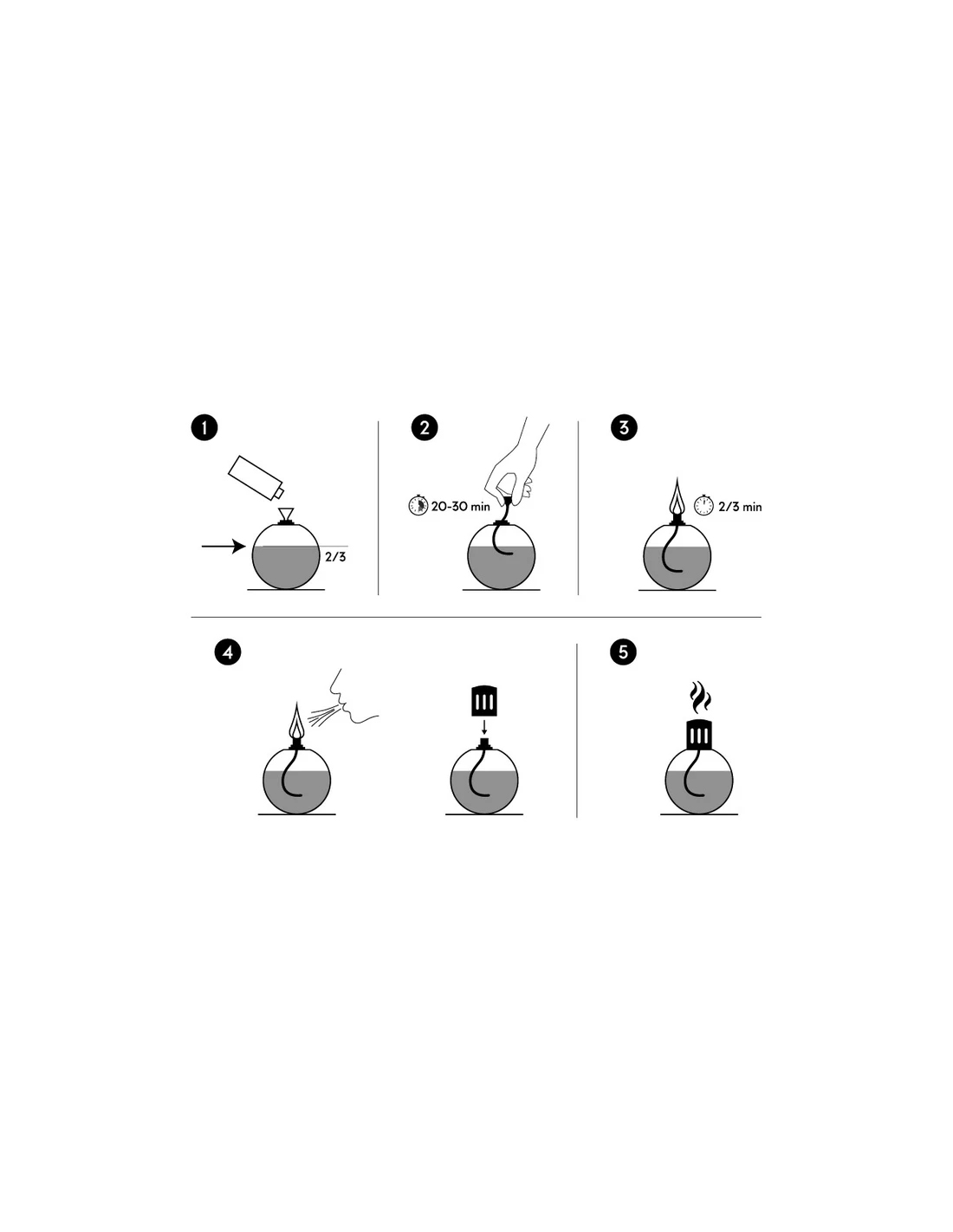 Riempi la lampada catalitica con la fragranza, lascia impregnare lo stoppino e accendi la lampada per pochi minuti.