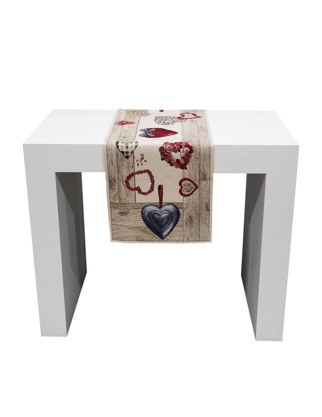 Runner da tavola in Gobelin frantasia Heart rinifito con orlo semplice.