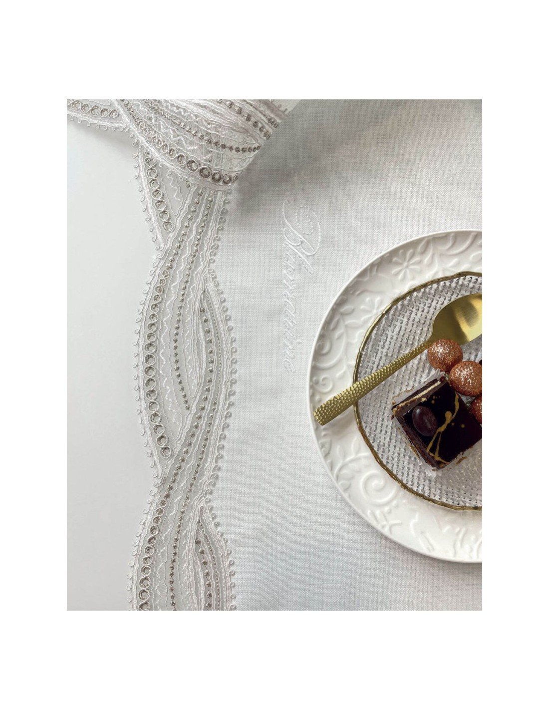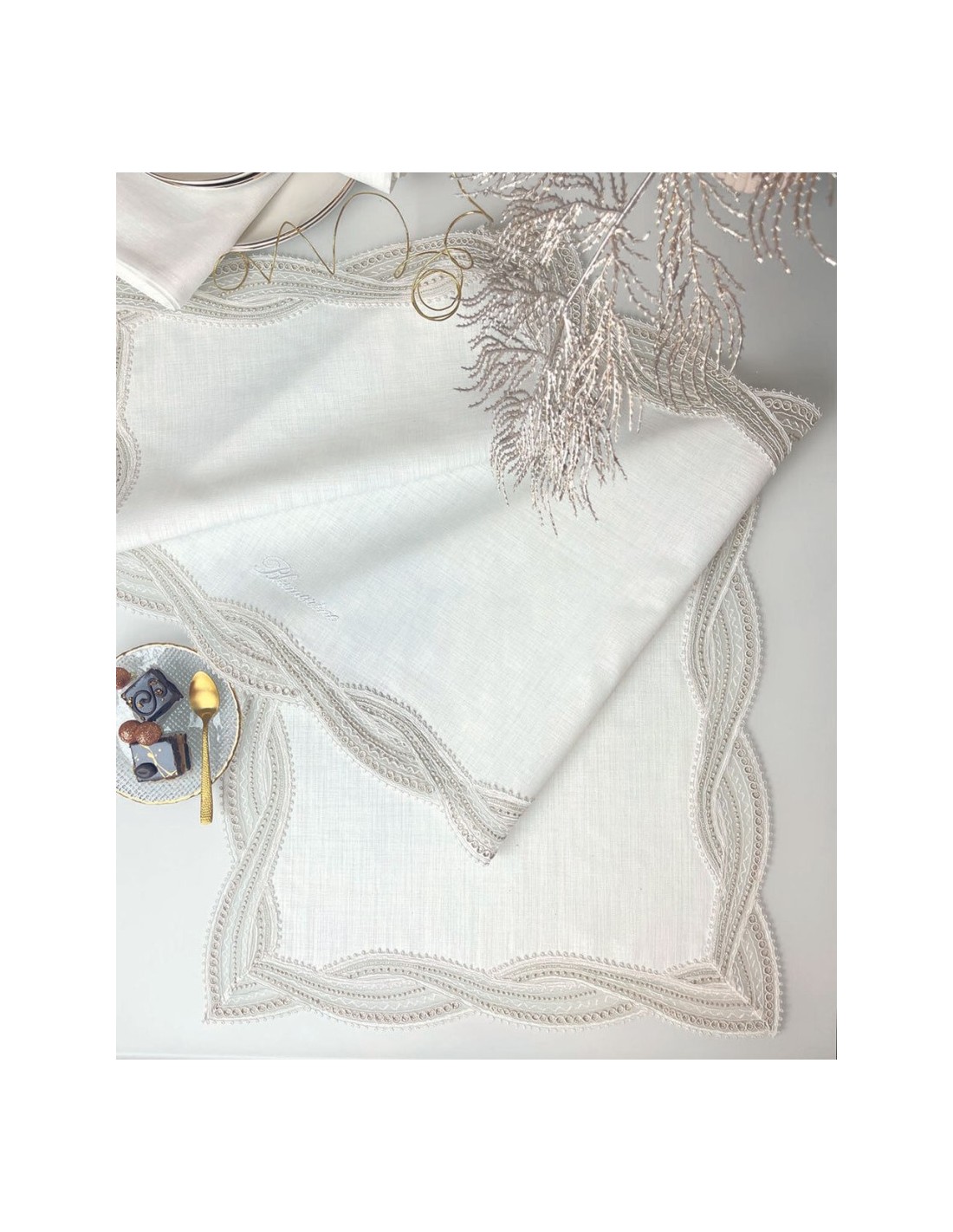 Runner Blumarine linea Dama con pizzo macramè rimesto ad intarsio su