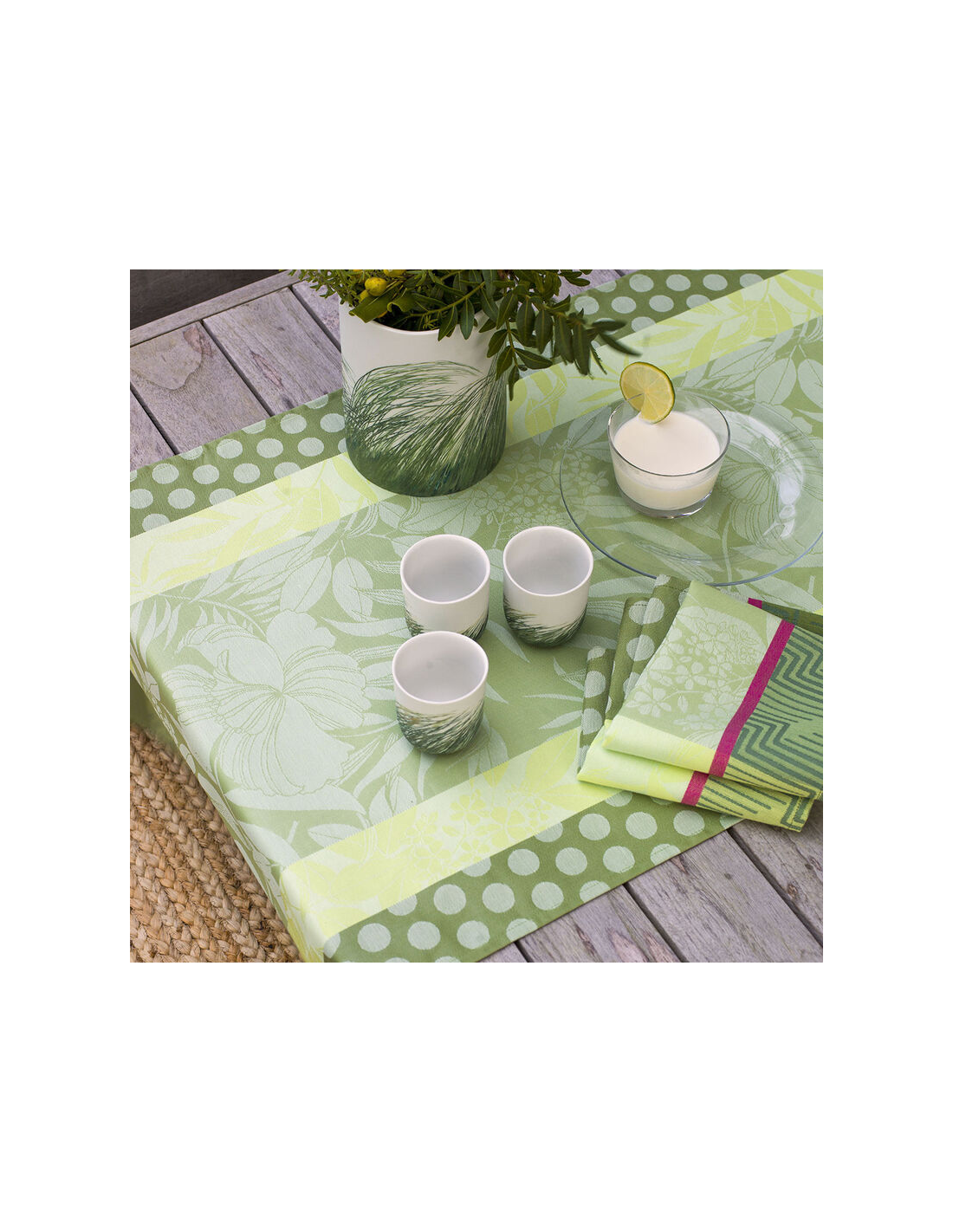 Tema iconico della nostra casa, la natura si reinventa quest'anno con un tocco di fantasia. La natura Urbaine celebra la vegetazione rinata e diffonde l'energia e la gioia della primavera. Fiori e foglie lussureggianti invadono i tavoli e le terrazze per godere del clima mite. La collezione è un ricco mix di motivi floreali e geometrici, con effetti 3D per un risultato decisamente dinamico. Una colorazione decisamente morbida in un mix di neutri. Per un aperitivo in terrazza o per i pasti di tutti i giorni, i corridori da tavola Nature Urbaine aggiungono raffinatezza all'arredamento.