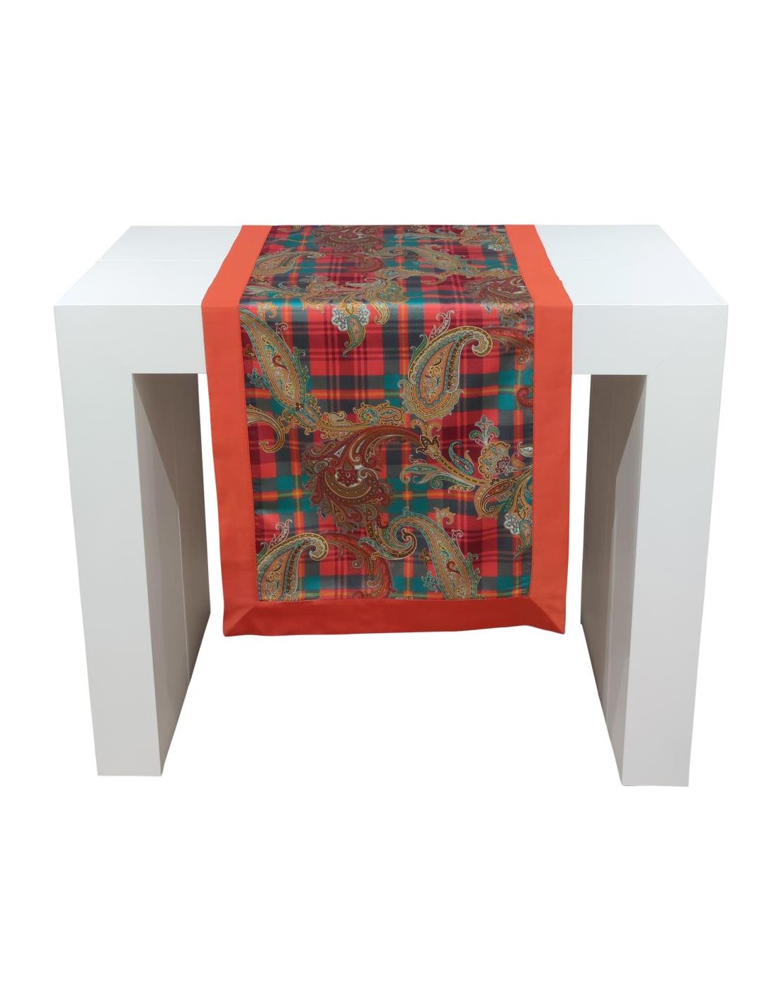 Runner Etro in Raso di puro Cotone fantasia Paisley su fondo tartan