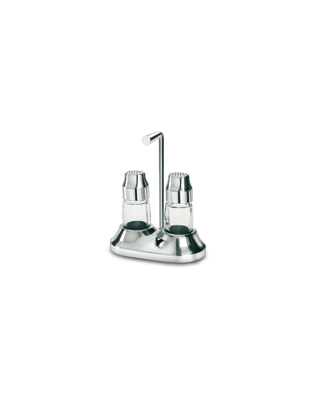 Set sale e pepe in vetro e acciaio inox lucidato a specchio.