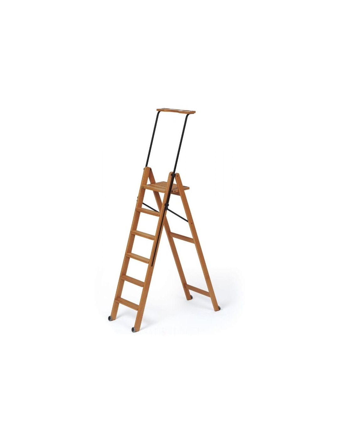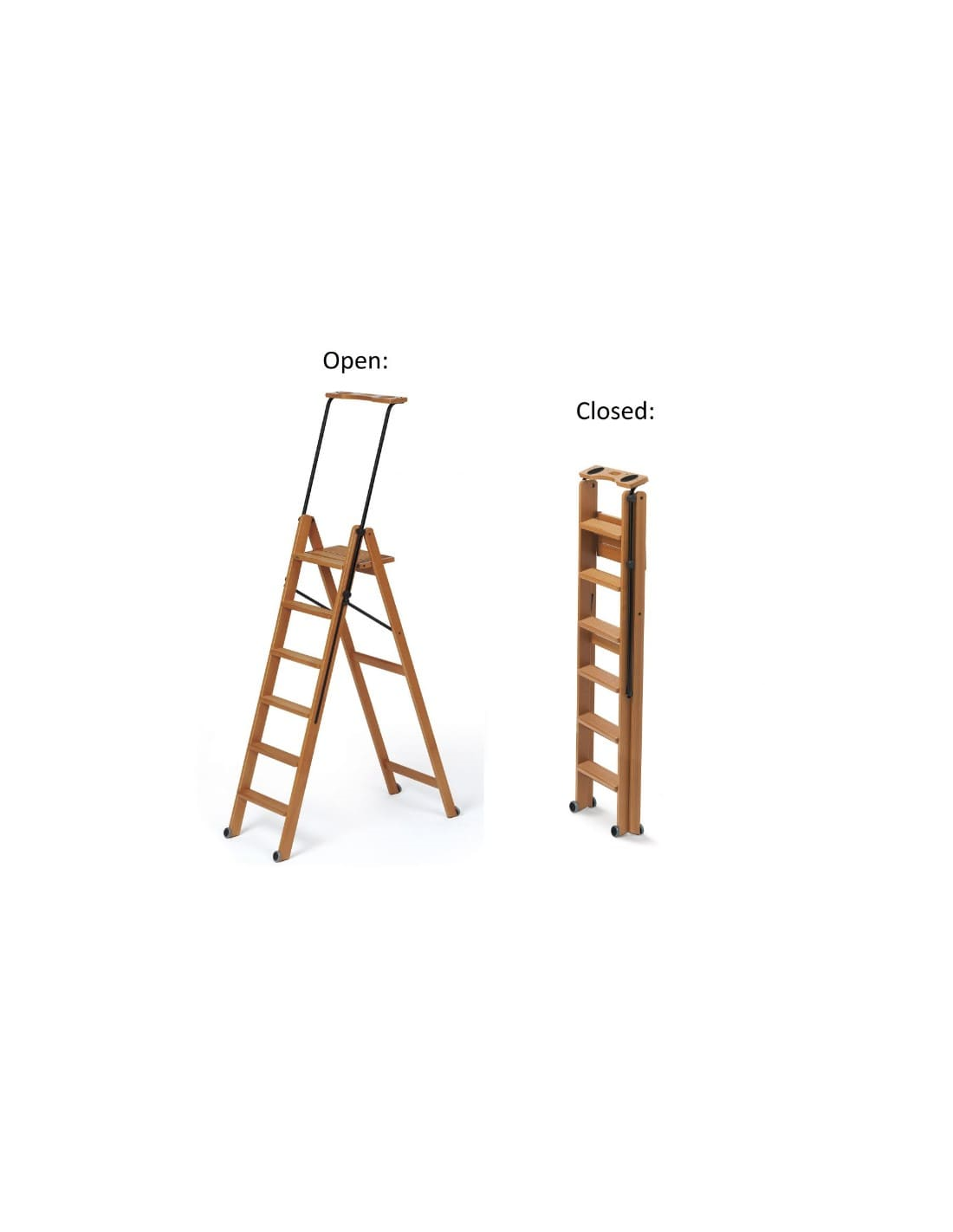 Scala 6 gradini TUSCANIA, Legno - Chiudibile - Con sistema di sicurezza - Finitura Ciliegio.