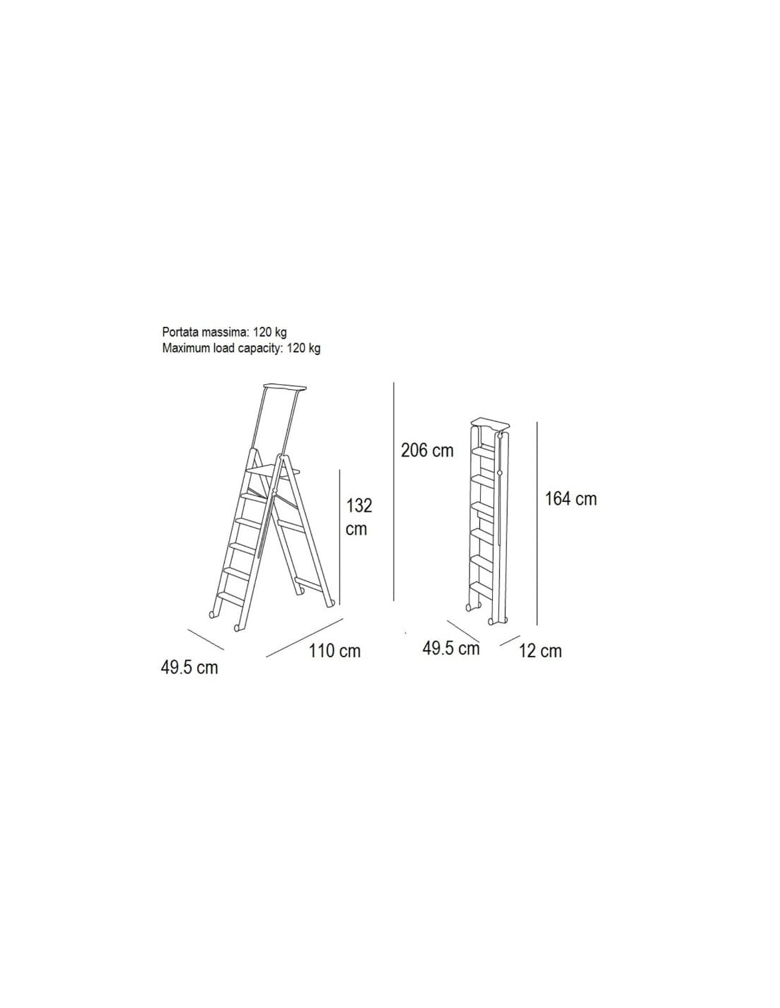 Altezza pedana superiore 132 cm – con piano di supporto superiore porta attrezzi, quando chiusa occupa solamente 12 cm e sta in piedi da sola.