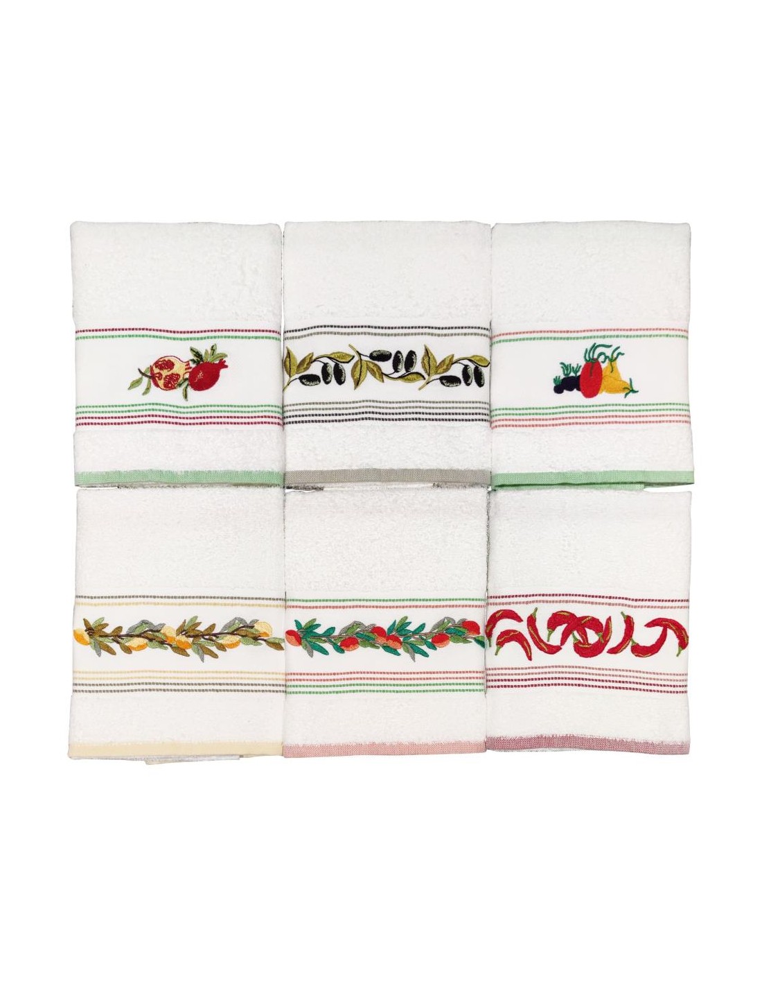Set 6 canovacci in spugna di 100% Cotone ricamato.