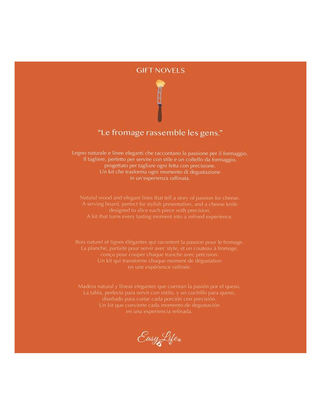 EASY LIFE SET TAGLIERE E COLTELLO FORMAGGIO - GIFT NOVELS