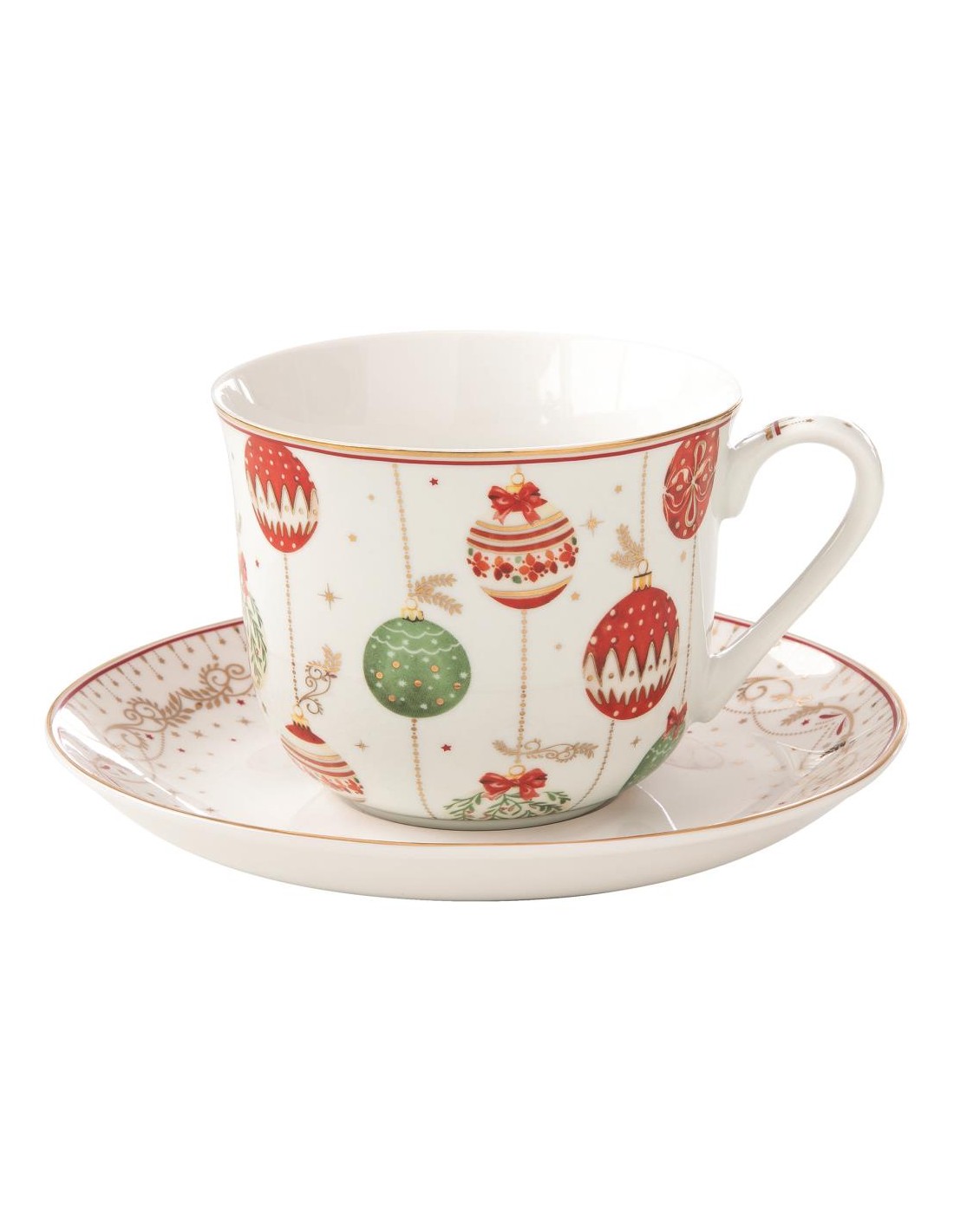 Tazza colazione con piatto coordinato in porcellana con decoro natalizio Christmas Eve.