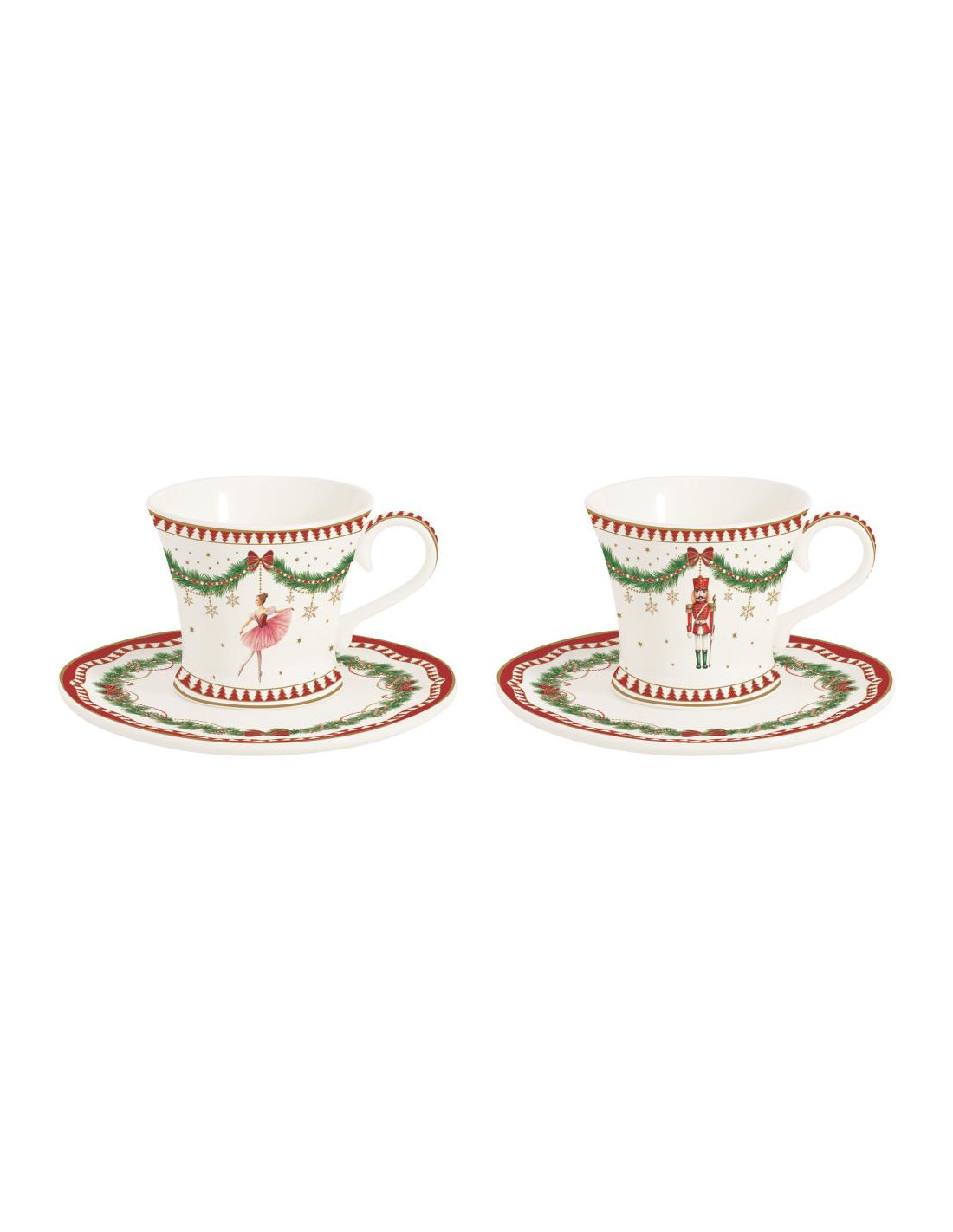Set 2 tazzine caffè con piattino coordinato in porcellana con decorazione natalizia Magie de Noel