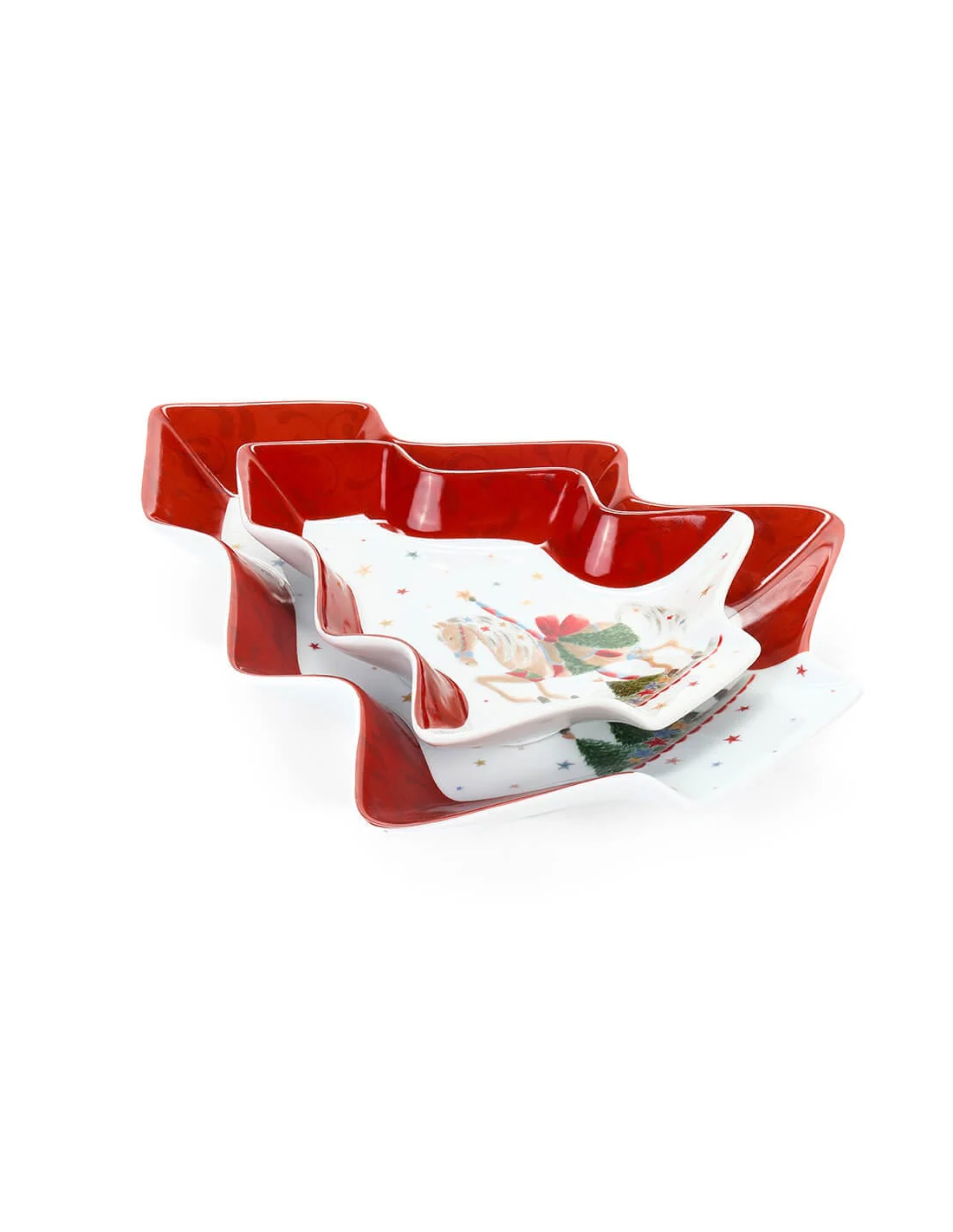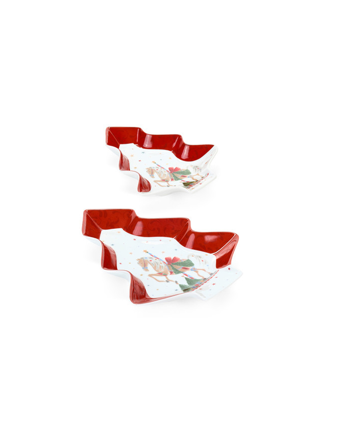 Set 2 Vassoio a forma di albero natalizio in porcellana decorata con pala coordinata, linea La Giostra di Amelie.