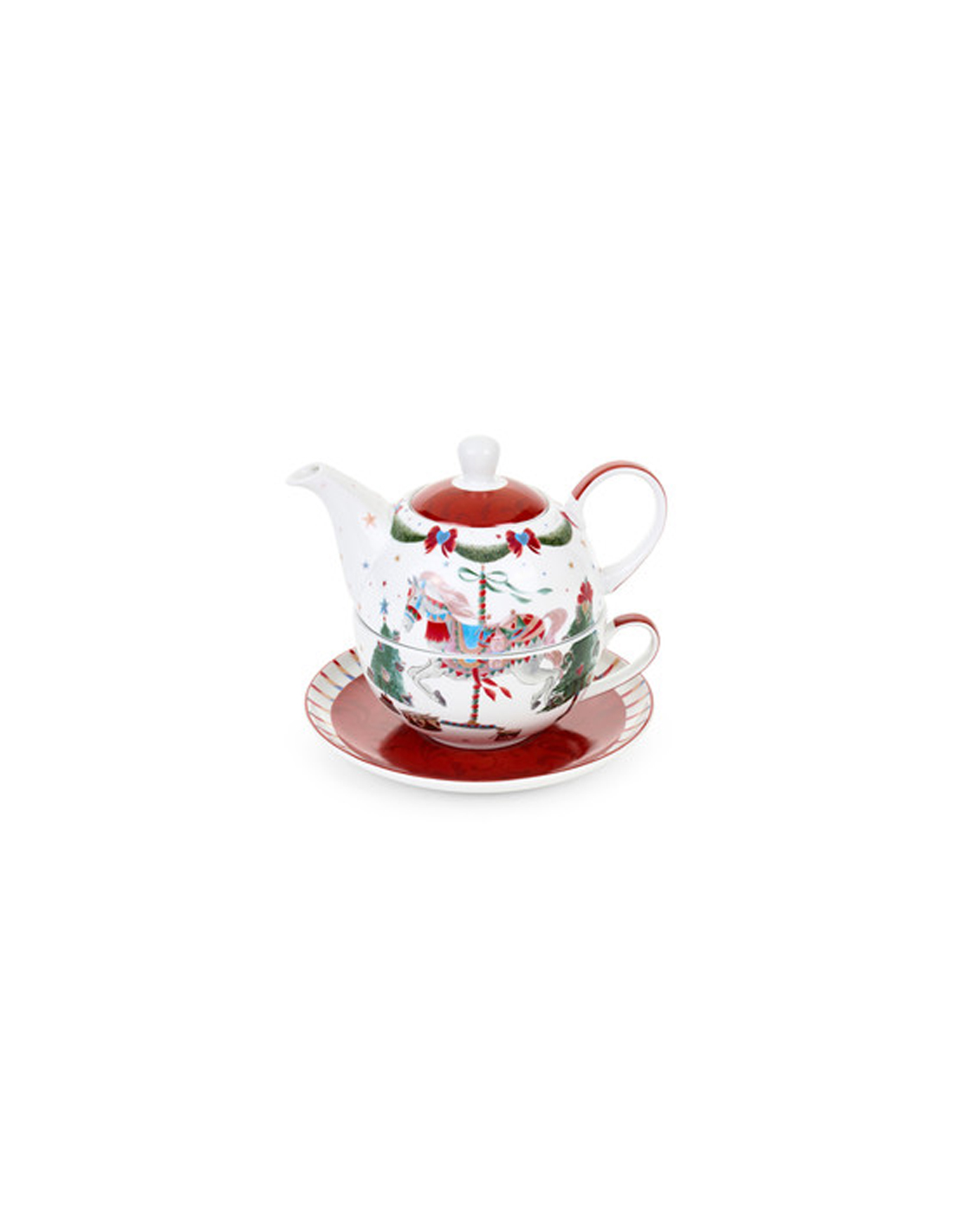 TEIERA CON TAZZA E PIATTINO NATALIZA IN PORCELLANA DECORATA
