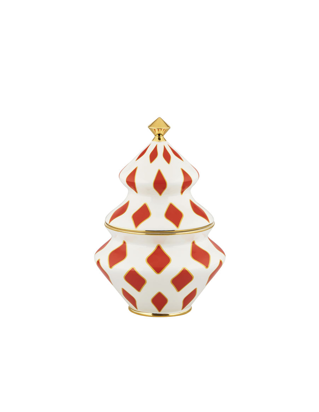 Con altrettanta originalità la designer usa i classici colori del bianco, del rosso e dell’oro, dando vita a una decorazione dal sapore totalmente contemporaneo. Inedito e stravagante, ma al tempo stesso classico ed evocativo, il portadolci Delight mescola elementi giocosi a una sofisticata eleganza.