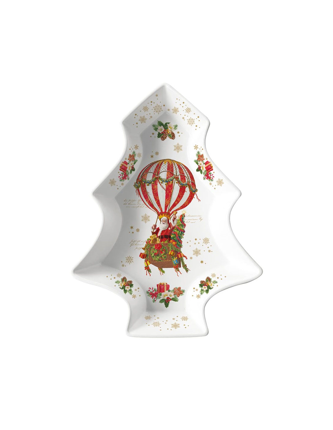 Piatto portata della collezione “Christmas Memories' di Easy Life, realizzato in porcellana lucida e dipinto a mano con colori vivaci, che si ispirano alle decorazioni natalizie.