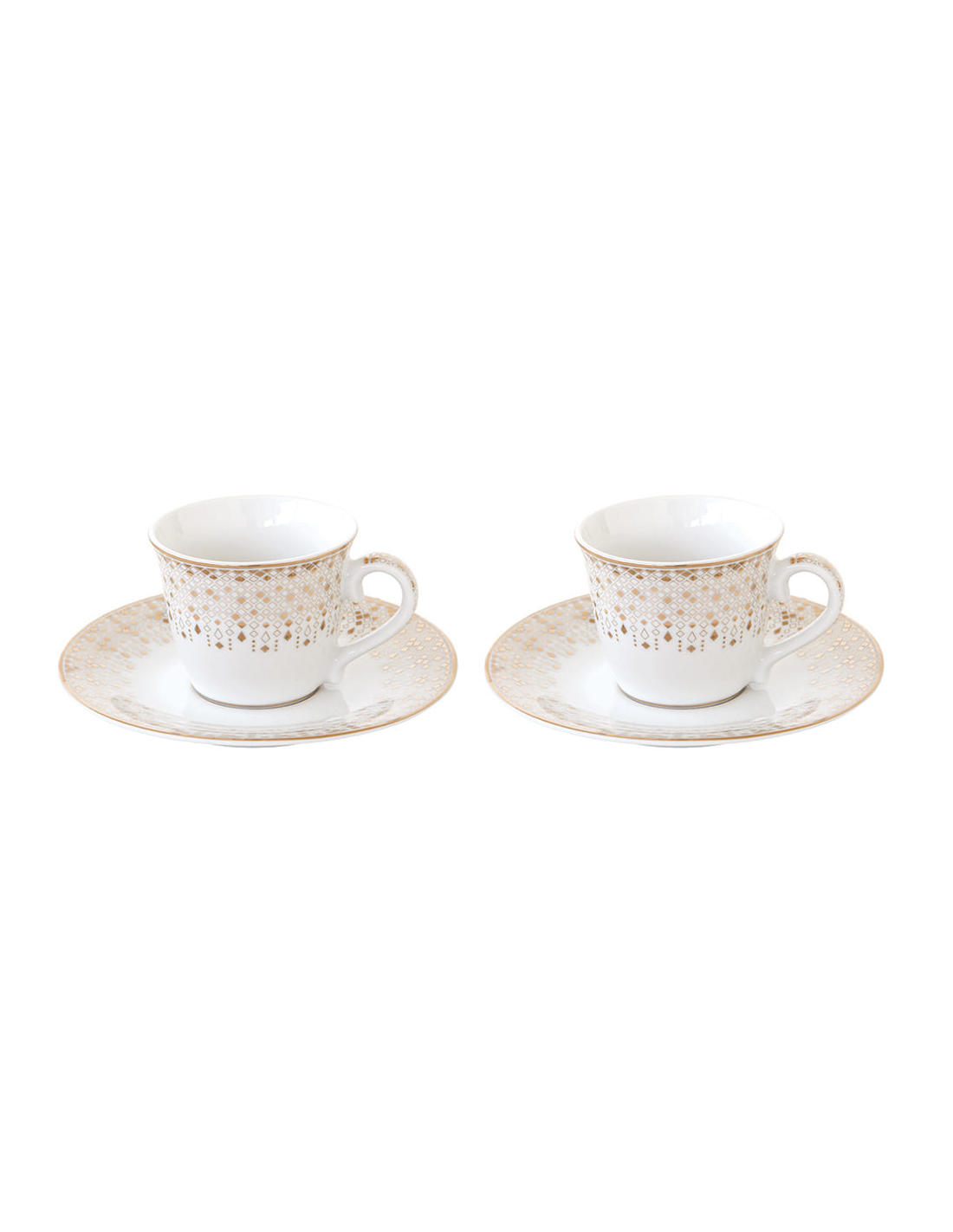 Set 2 tazzine caffè con piattino abbinato, in porcellana decorata e rifiniture in oro.