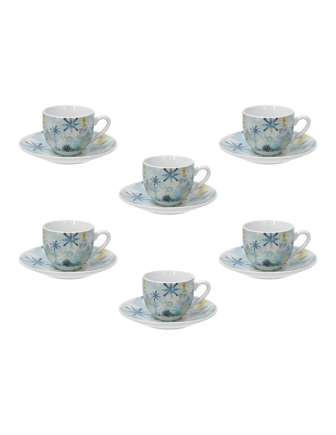 La confezione da 6 tazzine da caffè con piattino coordinato è in porcellana e si contraddistingue per il suo stile glamour e sofisticato, ideale da utilizzare come servizio da caffè per gli ospiti durante le feste.