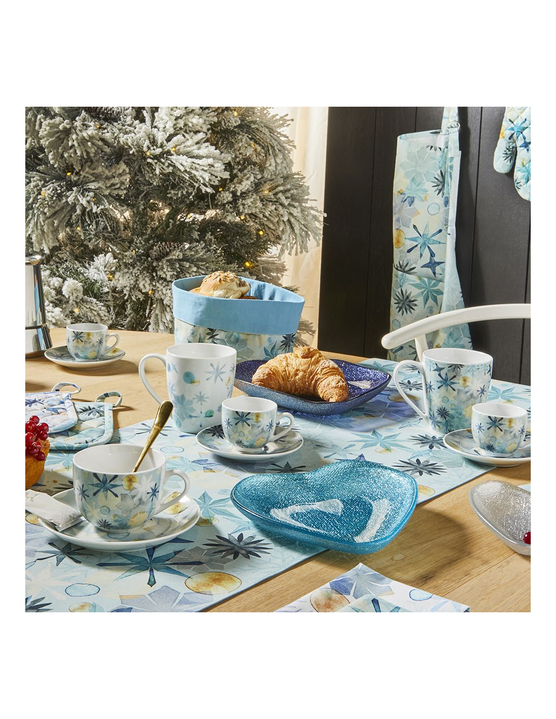 dell'azzurro con tocco argento, dedicata alla magia della neve e alle sue forme