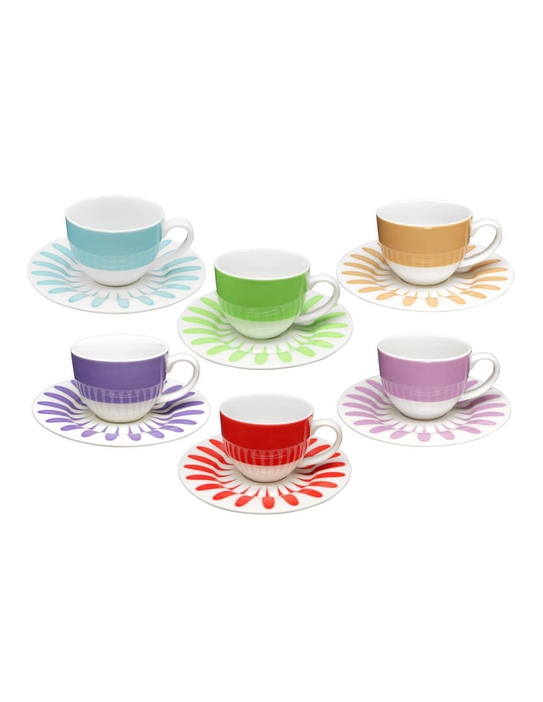 18 Tazze caffe con piattino coordinato 85 ml (3x 6 colori)
