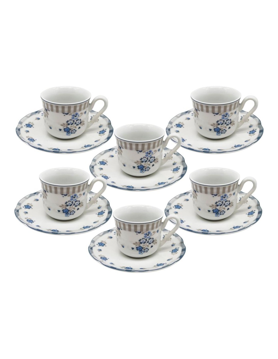 Set 6 tazze caffè con piattino coordinato in porcellana