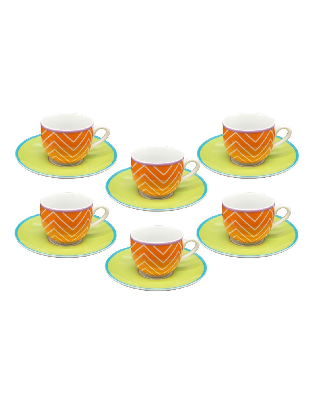 Set 6 tazze caffè con piattino coordinato in porcellana