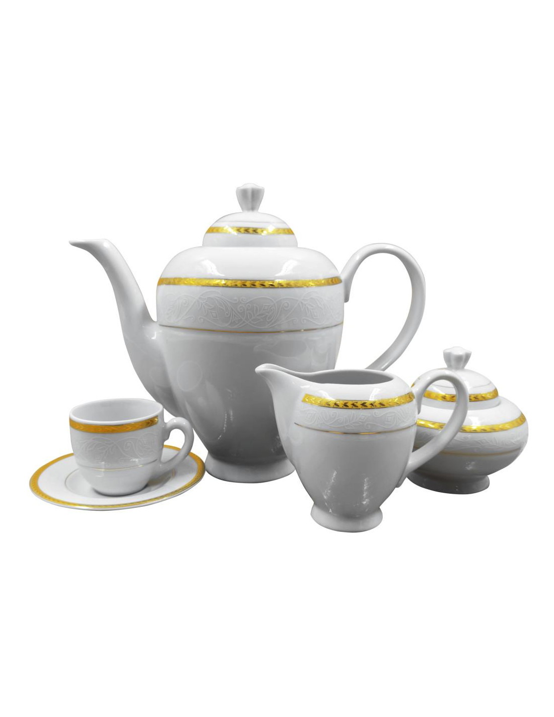 SET TAVOLA CON SERVIZIO CAFFE PER 12 PERSONE IN PORCELLANA BORDO ORO