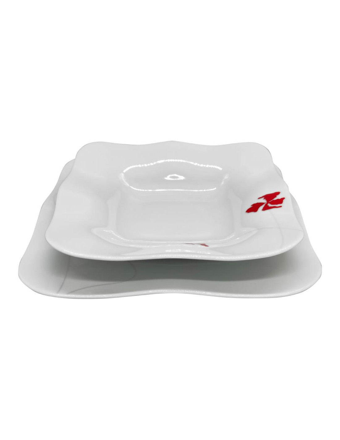 Servizio piatti quadrati eleganti in porcellana decorata da rifiniture simil