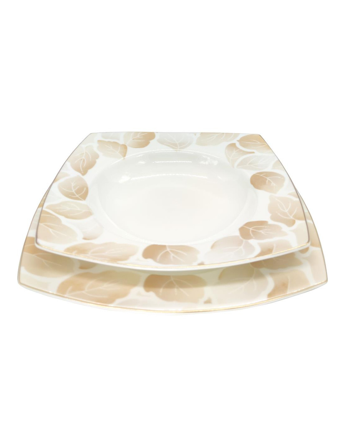 Servizio piatti quadrati eleganti in porcellana Bone China, decorata da